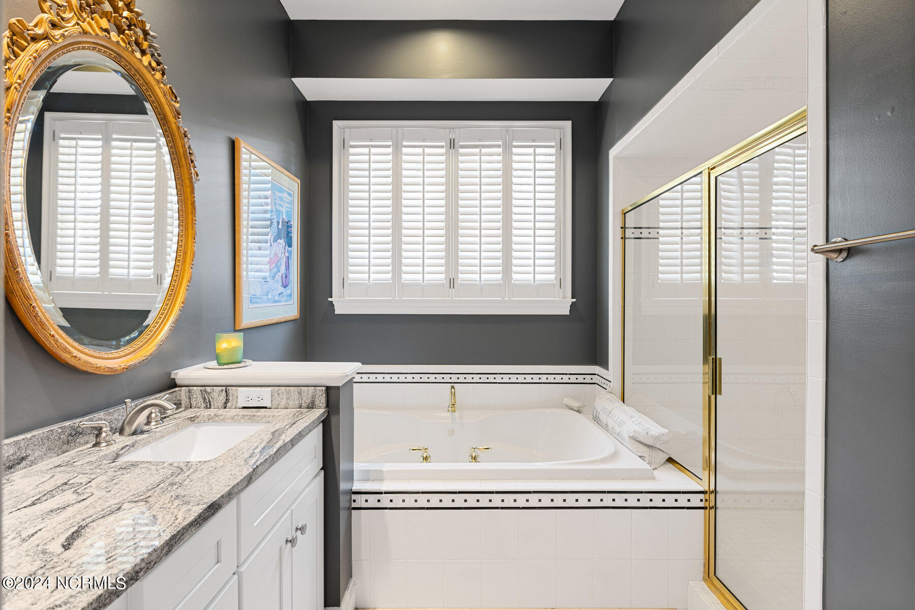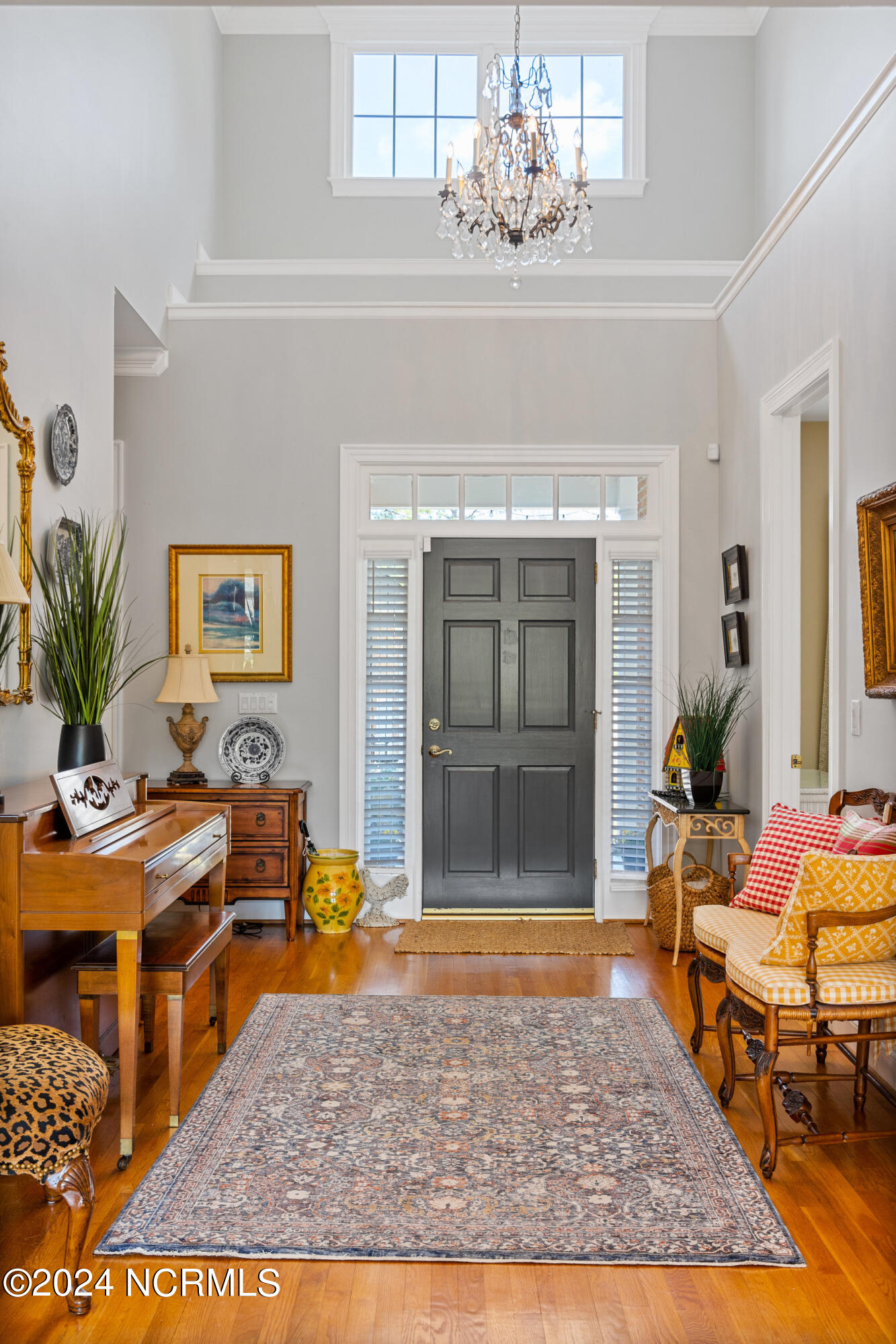 Located in the desirable gated community of Porters Neck Plantation, offering three bedrooms and three bathrooms, this elegant brick home provides both spaciousness and functionality for comfortable living. Take in the grandeur as you enter the foyer--with its soaring 19-foot ceiling, it sets the tone for the elegance that awaits throughout the home. Tranquil mornings will be spent savoring your cup of coffee as you enjoy the view of the picturesque pond. Experience the luxury of two master bedrooms, each boasting its own en suite bathroom for ultimate comfort and convenience. Embrace your culinary creativity in the spacious kitchen featuring an abundance of cabinets and storage space, perfect for keeping all your kitchen essentials. Admire the timeless charm of elegant crown moldings and gleaming hardwood floors throughout the home. Stay organized effortlessly with three walk-in closets that provide ample room for your wardrobe and belongings. Bask in the natural light and panoramic golf course views as the open floor plan flows seamlessly from indoor to outdoor living spaces. Porters Neck Plantation is an established tree-lined community great for biking, dog walking and enjoying nature. Residents enjoy access to the community boat ramp and picnic area on Bald Eagle Lane.