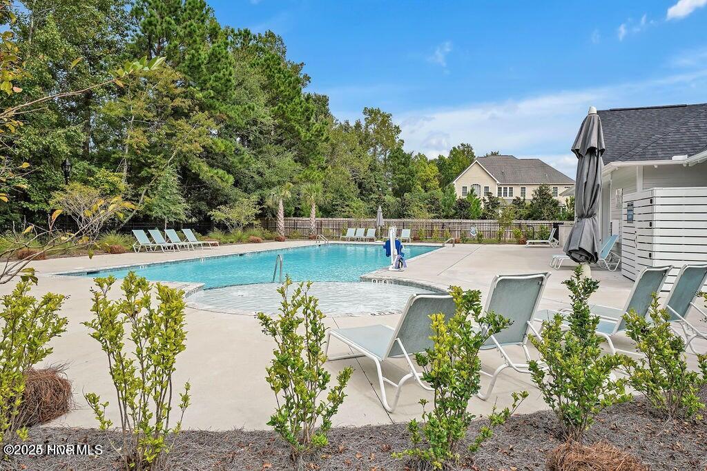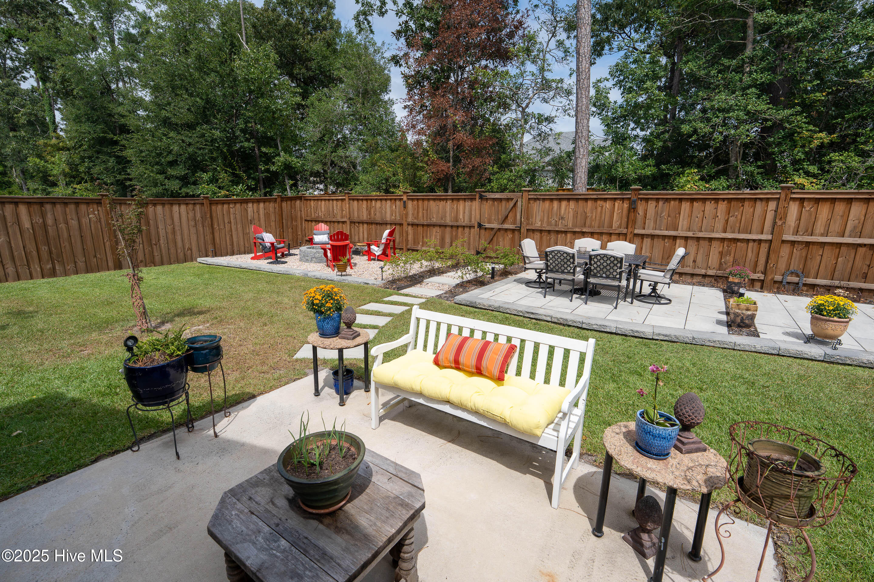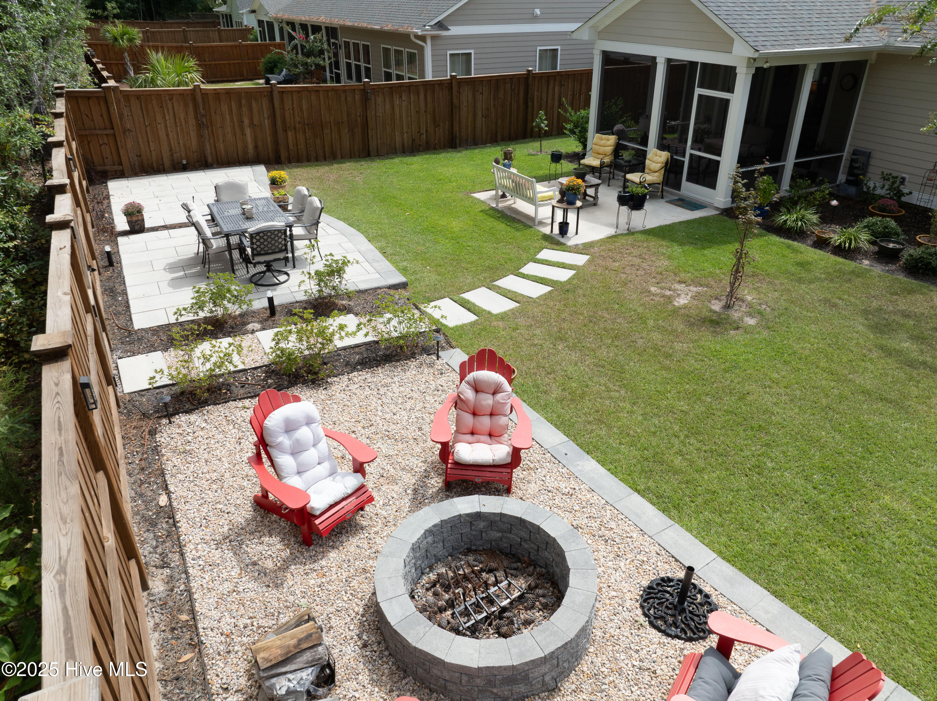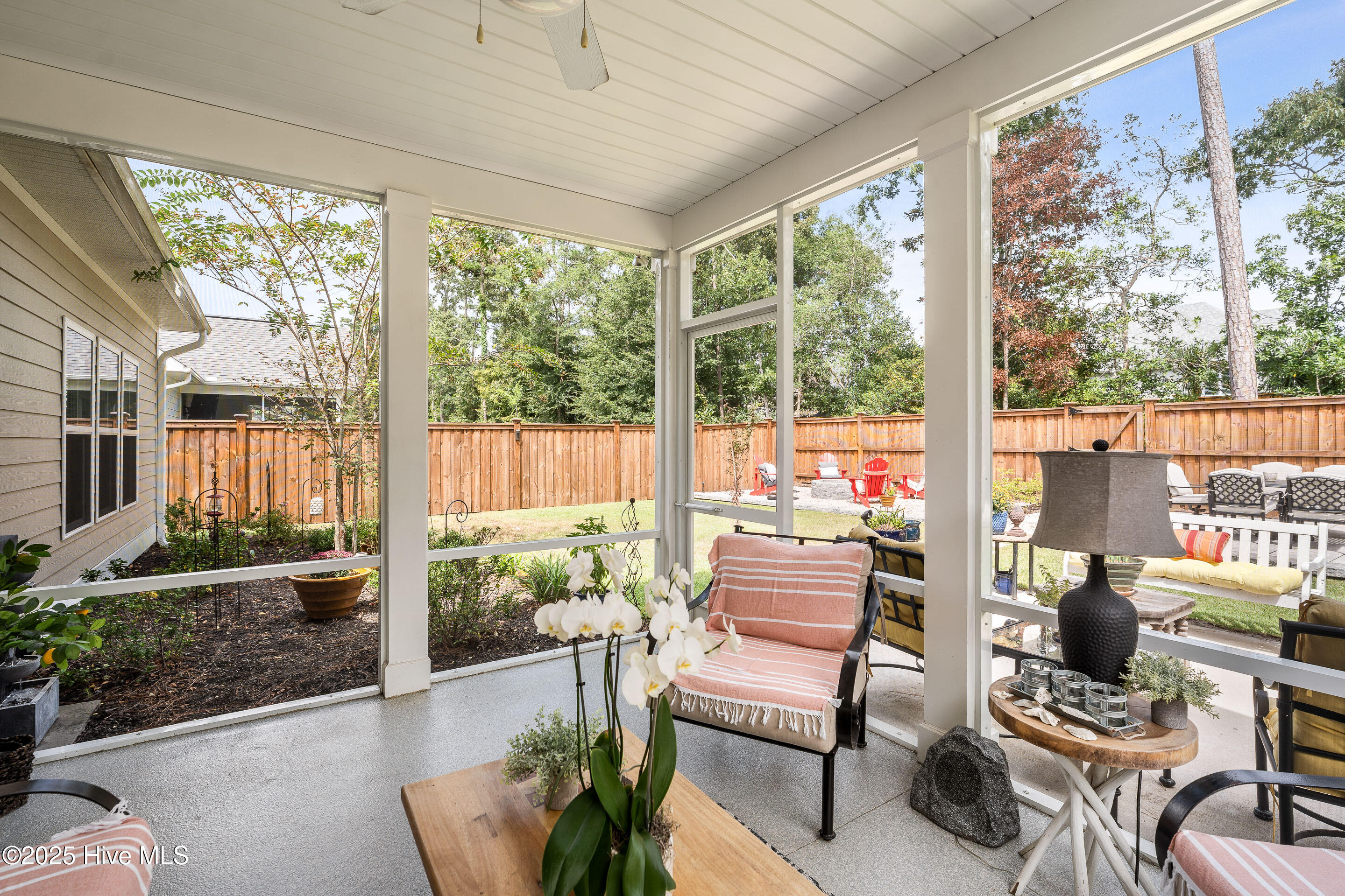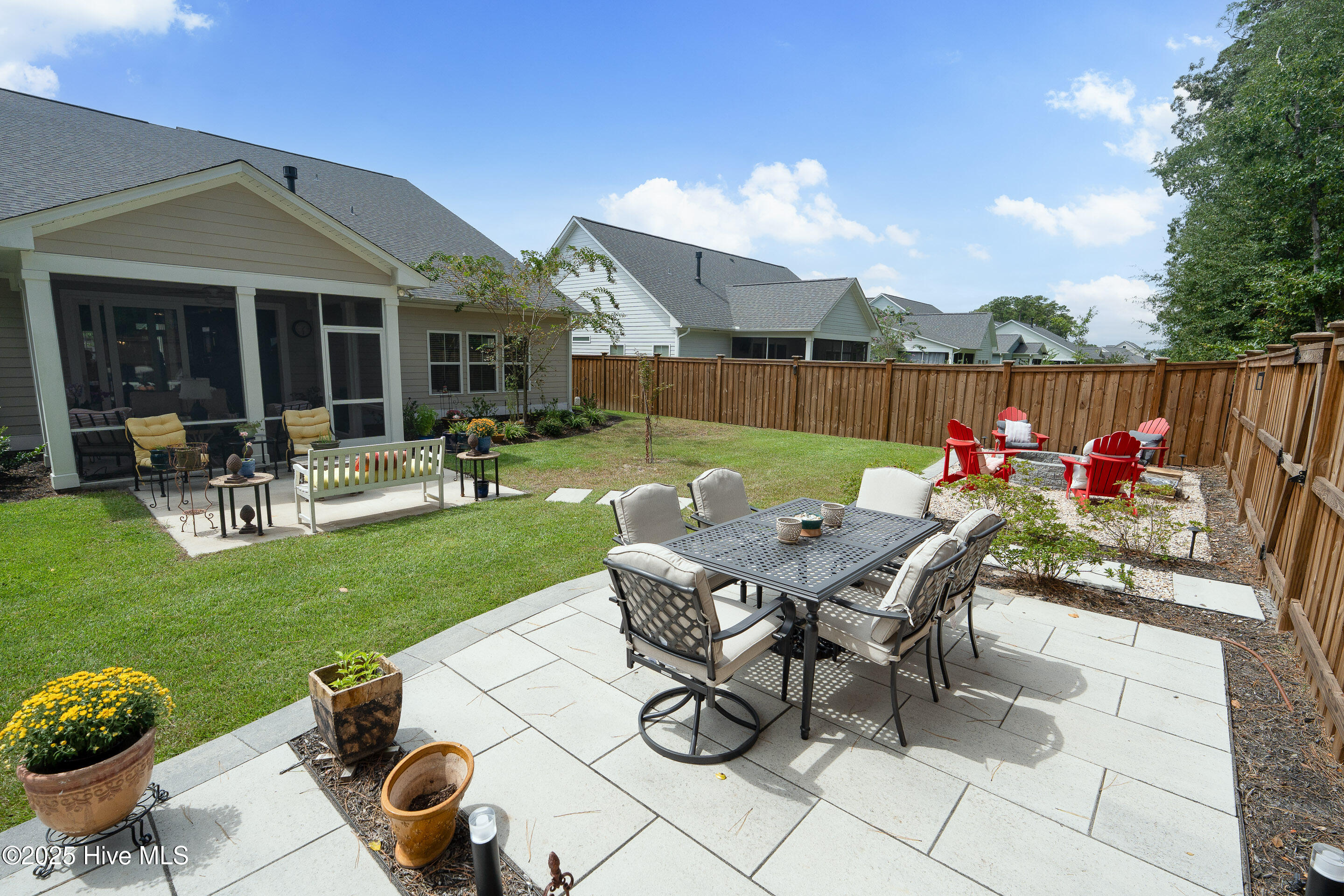 This stunning Everett floor plan offers 4 bedrooms, 2.5 bathrooms, and a desirable first-floor master suite. The home's exterior shines with Hardie Board siding and a charming coastal-style elevation. Step inside to an open-concept layout filled with natural light. The chef's kitchen is a showstopper with quartz countertops, a large island, custom cabinetry, stylish tile backsplash, gas stove, pantry, and high-end KitchenAid appliances. A semi-formal dining area flows into the spacious living room, featuring vaulted ceilings, custom lighting, and a gas fireplace. The luxurious master suite boasts dual Stricklands-designed walk-in closets and a spa-like bath with custom tile, cabinetry, oversized shower, and a private water closet. The master bath conveniently connects to a wraparound laundry room with upgraded cabinetry and lighting. Upstairs, enjoy a versatile bonus room, three additional bedrooms, and a full bath with double vanity. Perfect for entertaining, this home includes Telescoping Florida Doors leading to a screened-in porch, additional patios, a custom firepit, ambient lighting, and a private fenced yard. Community amenities include a pool, gazebo, and grilling area--all in the desirable Porter's Neck area of Wilmington.