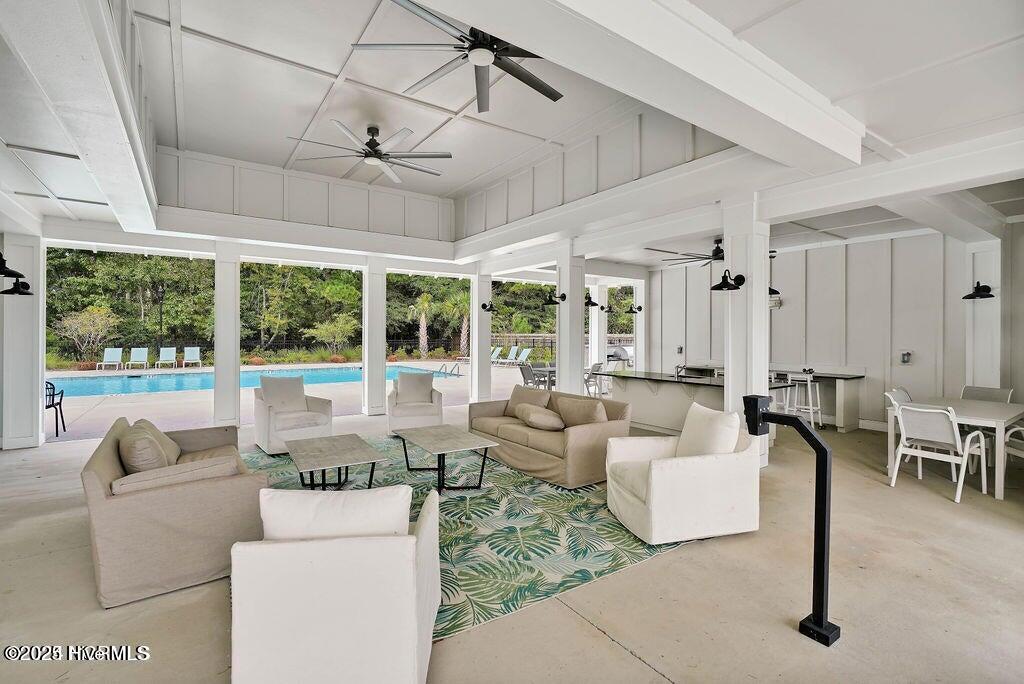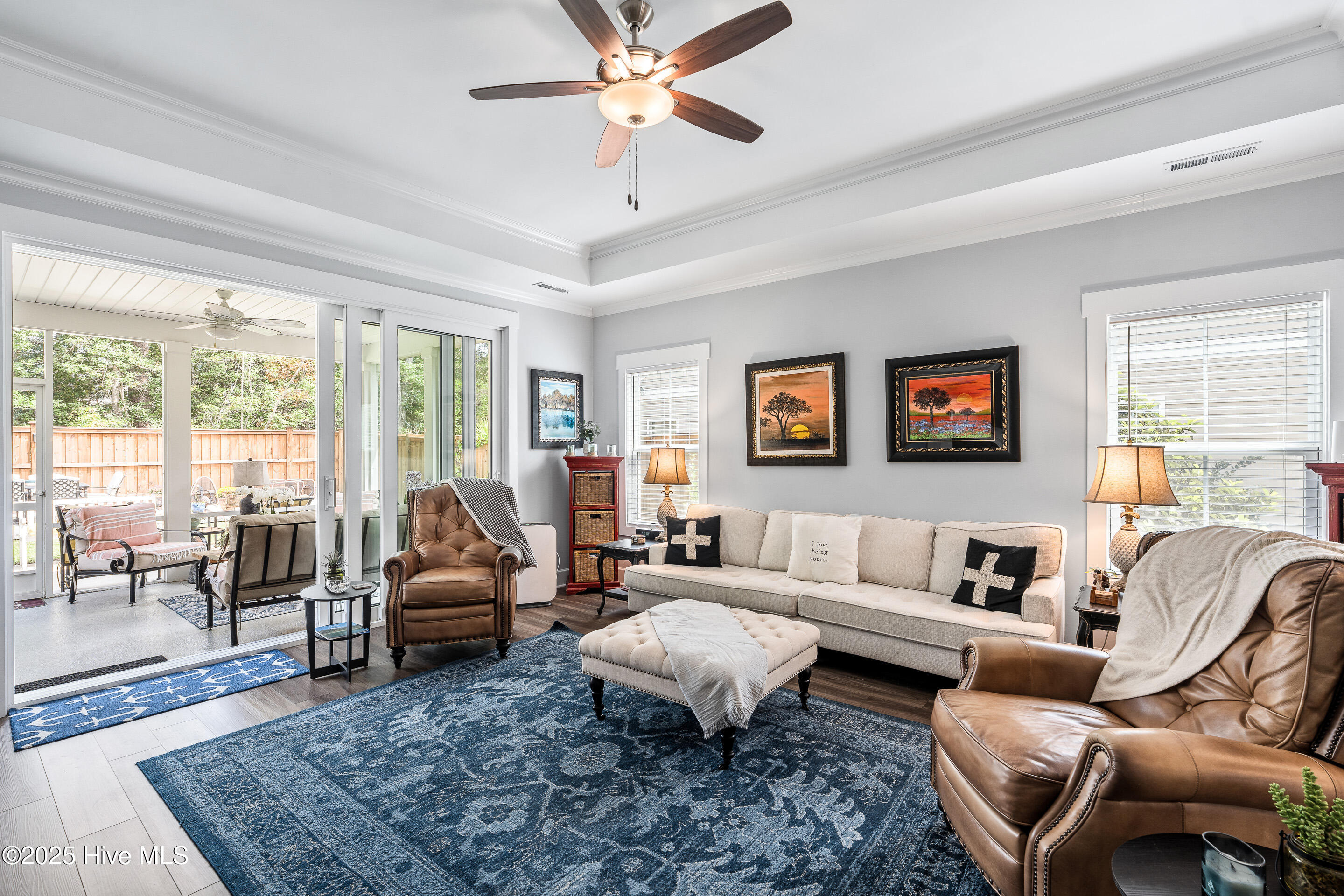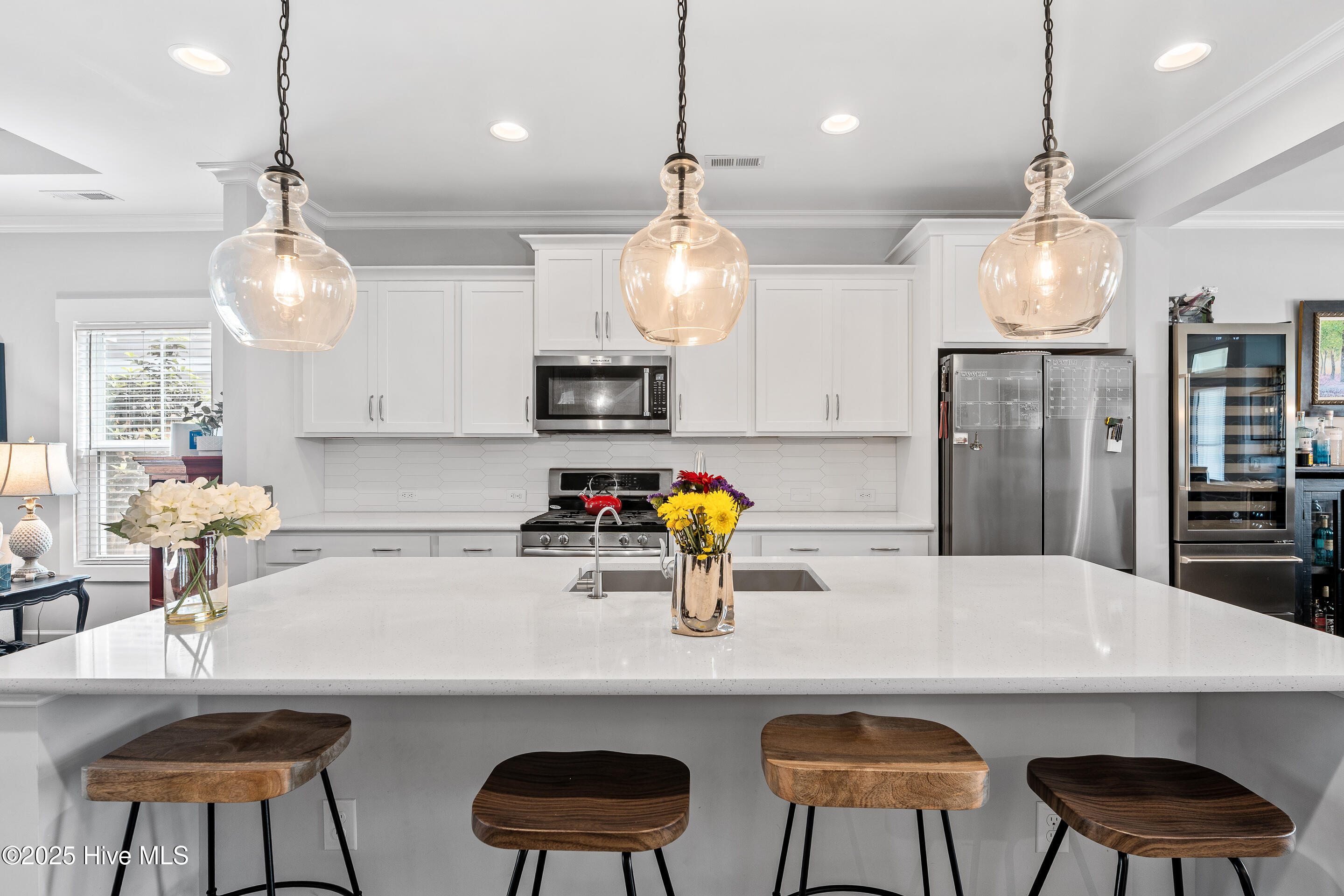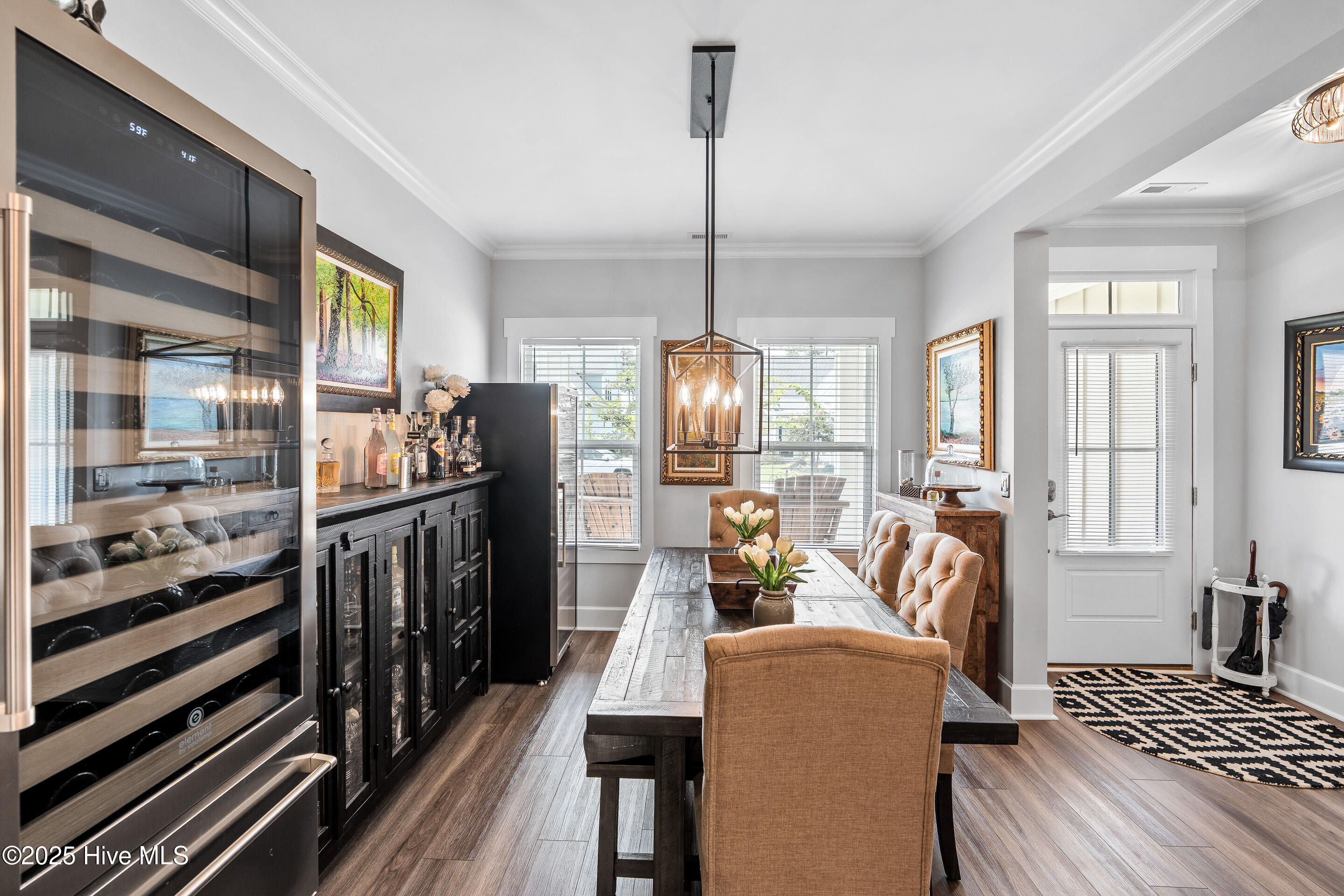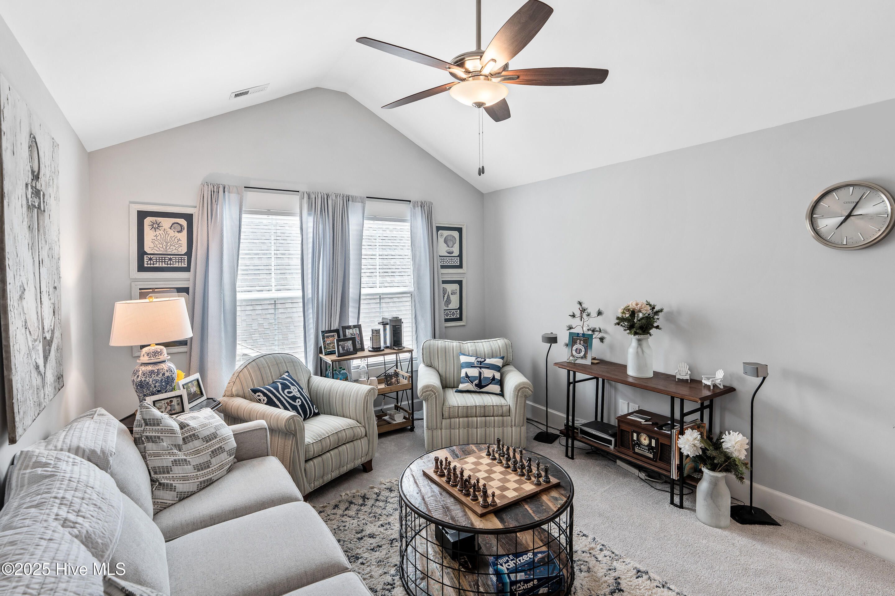 This stunning Everett floor plan offers 4 bedrooms, 2.5 bathrooms, and a desirable first-floor master suite. The home's exterior shines with Hardie Board siding and a charming coastal-style elevation. Step inside to an open-concept layout filled with natural light. The chef's kitchen is a showstopper with quartz countertops, a large island, custom cabinetry, stylish tile backsplash, gas stove, pantry, and high-end KitchenAid appliances. A semi-formal dining area flows into the spacious living room, featuring vaulted ceilings, custom lighting, and a gas fireplace. The luxurious master suite boasts dual Stricklands-designed walk-in closets and a spa-like bath with custom tile, cabinetry, oversized shower, and a private water closet. The master bath conveniently connects to a wraparound laundry room with upgraded cabinetry and lighting. Upstairs, enjoy a versatile bonus room, three additional bedrooms, and a full bath with double vanity. Perfect for entertaining, this home includes Telescoping Florida Doors leading to a screened-in porch, additional patios, a custom firepit, ambient lighting, and a private fenced yard. Community amenities include a pool, gazebo, and grilling area--all in the desirable Porter's Neck area of Wilmington.