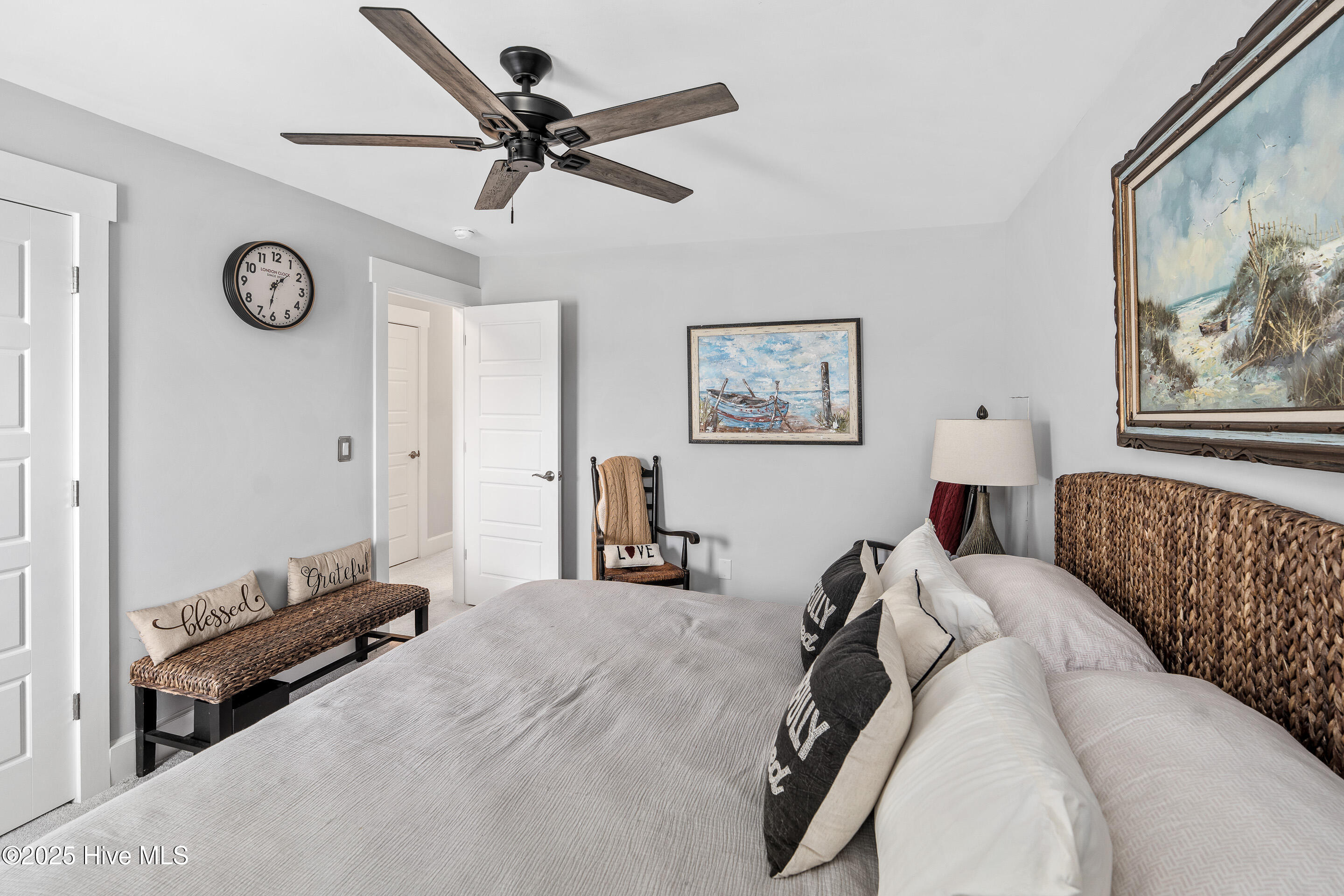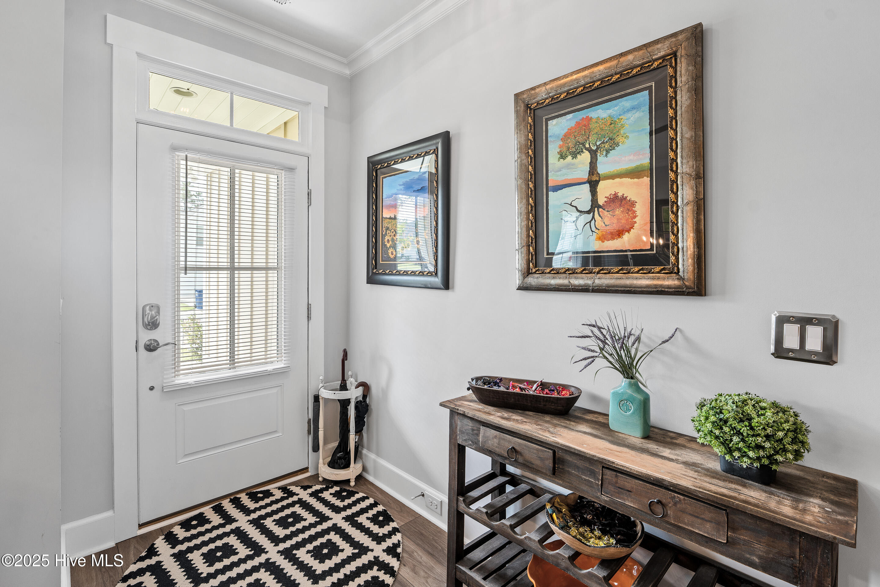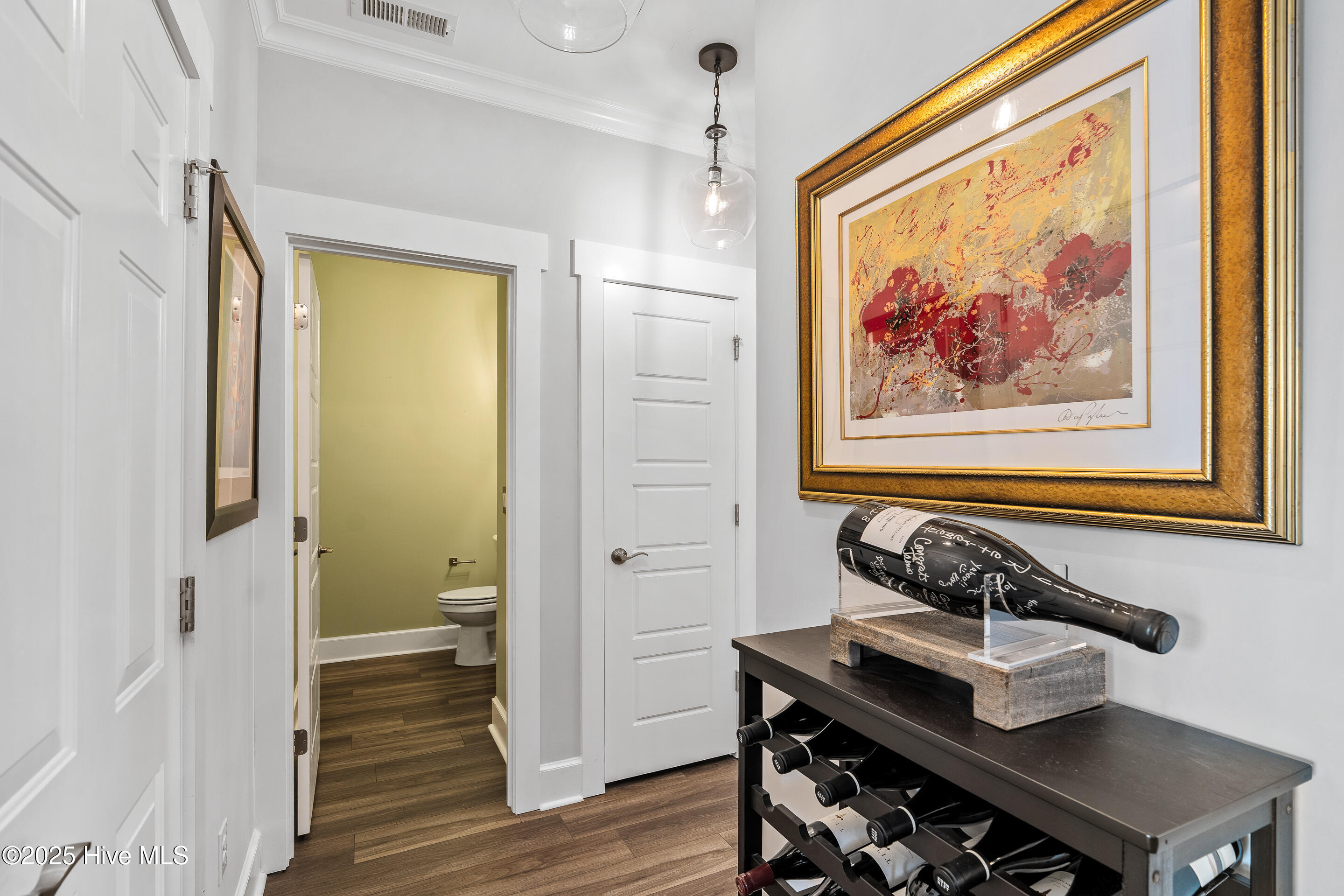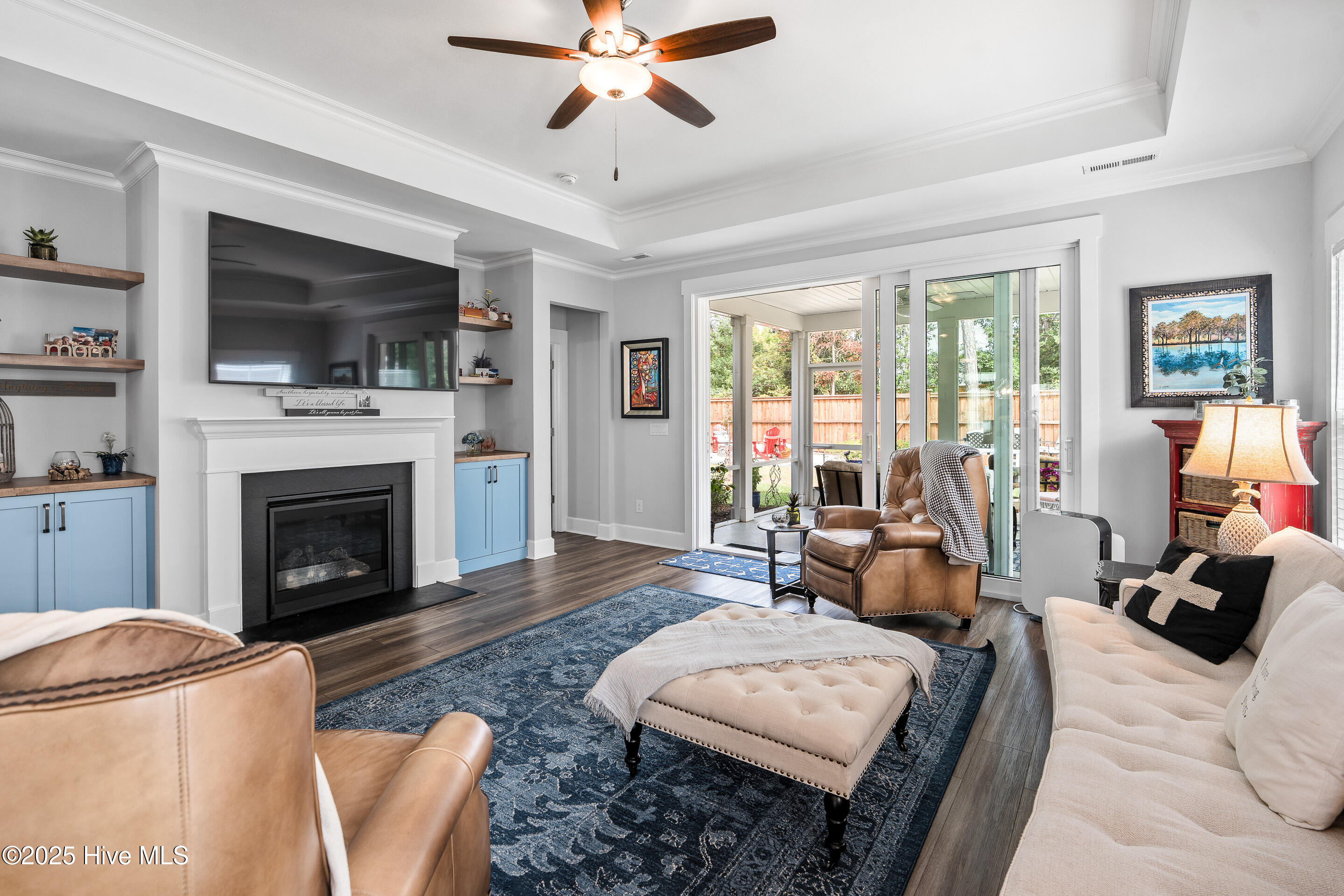 This stunning Everett floor plan offers 4 bedrooms, 2.5 bathrooms, and a desirable first-floor master suite. The home's exterior shines with Hardie Board siding and a charming coastal-style elevation. Step inside to an open-concept layout filled with natural light. The chef's kitchen is a showstopper with quartz countertops, a large island, custom cabinetry, stylish tile backsplash, gas stove, pantry, and high-end KitchenAid appliances. A semi-formal dining area flows into the spacious living room, featuring vaulted ceilings, custom lighting, and a gas fireplace. The luxurious master suite boasts dual Stricklands-designed walk-in closets and a spa-like bath with custom tile, cabinetry, oversized shower, and a private water closet. The master bath conveniently connects to a wraparound laundry room with upgraded cabinetry and lighting. Upstairs, enjoy a versatile bonus room, three additional bedrooms, and a full bath with double vanity. Perfect for entertaining, this home includes Telescoping Florida Doors leading to a screened-in porch, additional patios, a custom firepit, ambient lighting, and a private fenced yard. Community amenities include a pool, gazebo, and grilling area--all in the desirable Porter's Neck area of Wilmington.