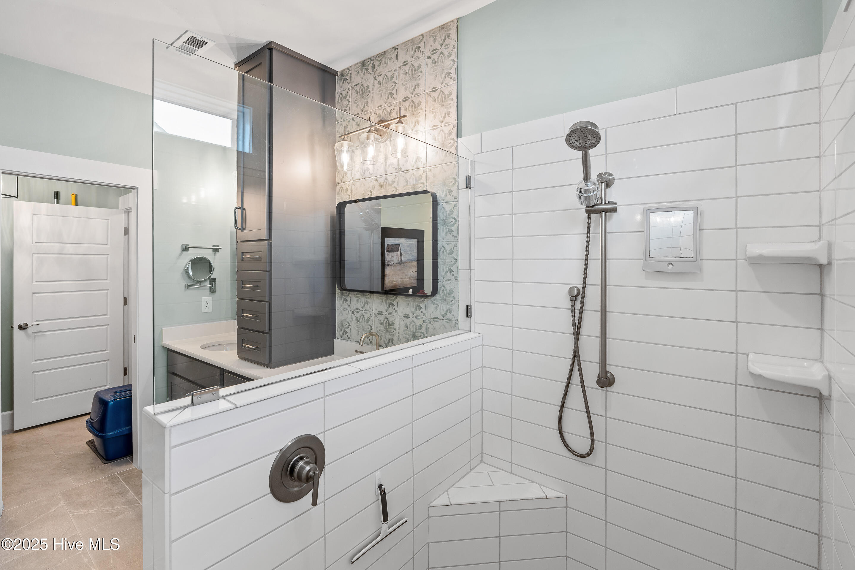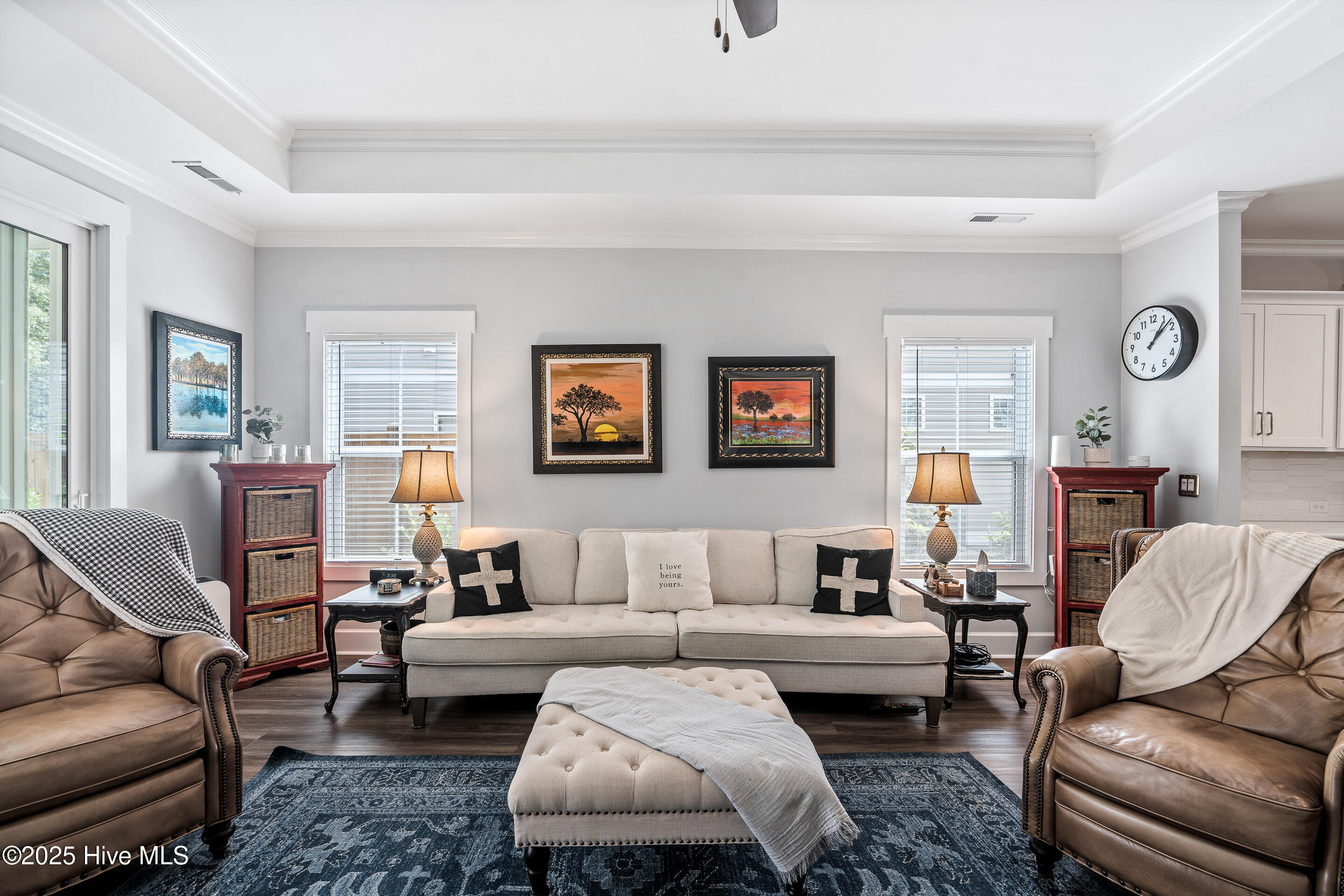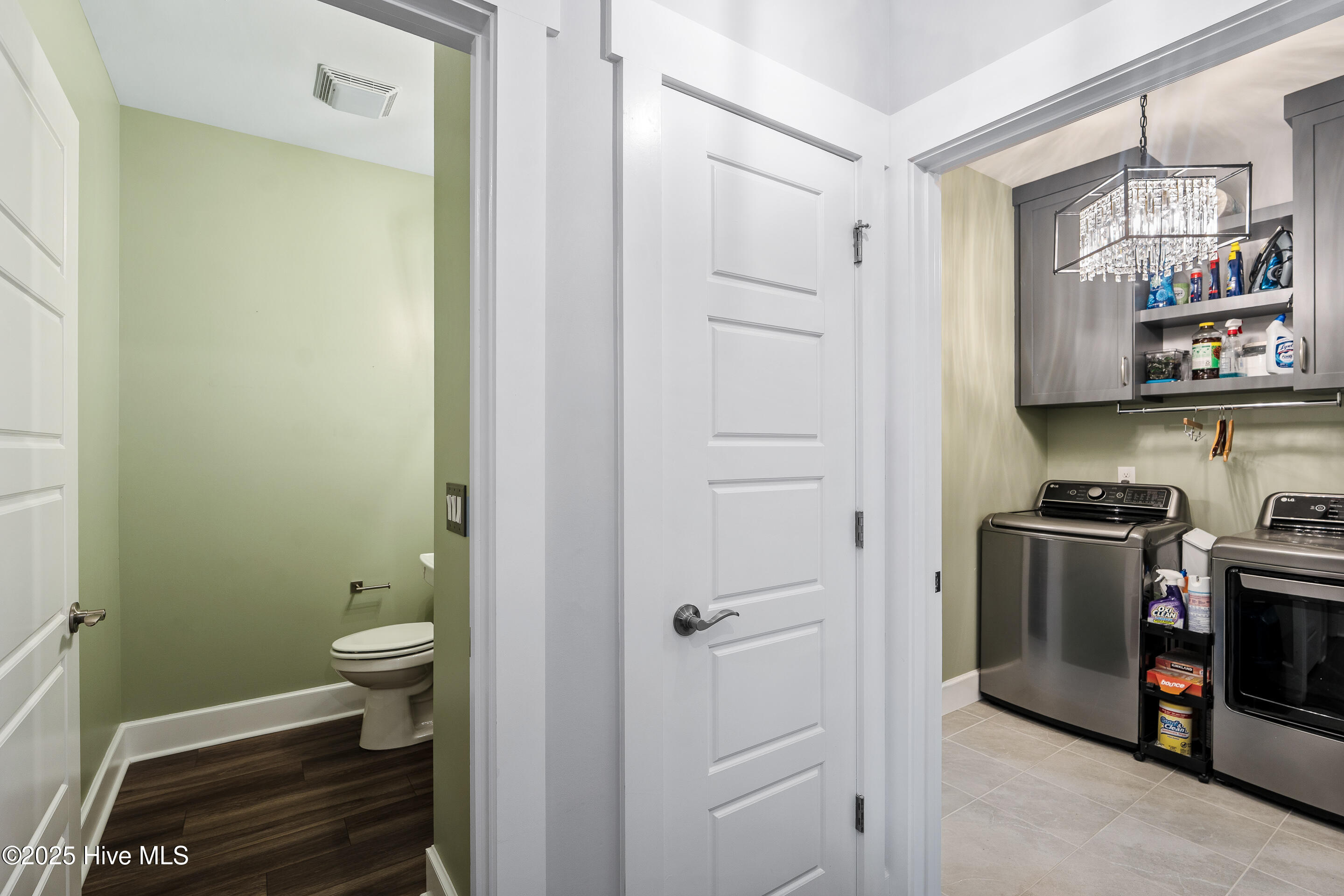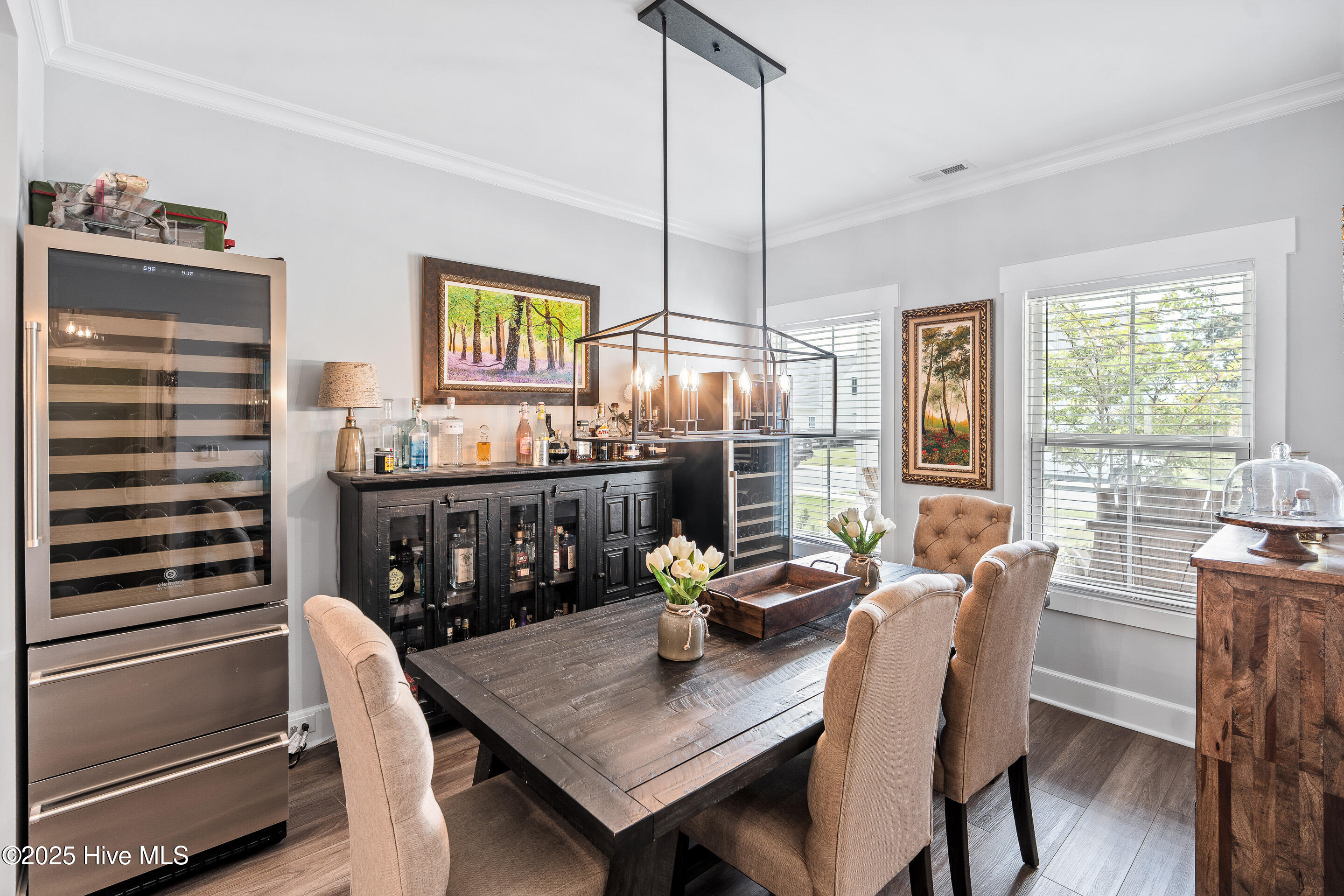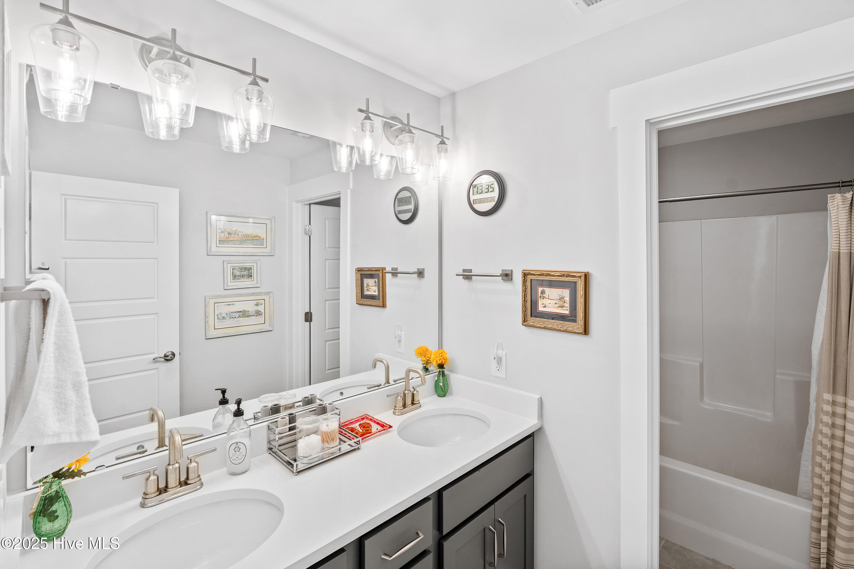 This stunning Everett floor plan offers 4 bedrooms, 2.5 bathrooms, and a desirable first-floor master suite. The home's exterior shines with Hardie Board siding and a charming coastal-style elevation. Step inside to an open-concept layout filled with natural light. The chef's kitchen is a showstopper with quartz countertops, a large island, custom cabinetry, stylish tile backsplash, gas stove, pantry, and high-end KitchenAid appliances. A semi-formal dining area flows into the spacious living room, featuring vaulted ceilings, custom lighting, and a gas fireplace. The luxurious master suite boasts dual Stricklands-designed walk-in closets and a spa-like bath with custom tile, cabinetry, oversized shower, and a private water closet. The master bath conveniently connects to a wraparound laundry room with upgraded cabinetry and lighting. Upstairs, enjoy a versatile bonus room, three additional bedrooms, and a full bath with double vanity. Perfect for entertaining, this home includes Telescoping Florida Doors leading to a screened-in porch, additional patios, a custom firepit, ambient lighting, and a private fenced yard. Community amenities include a pool, gazebo, and grilling area--all in the desirable Porter's Neck area of Wilmington.