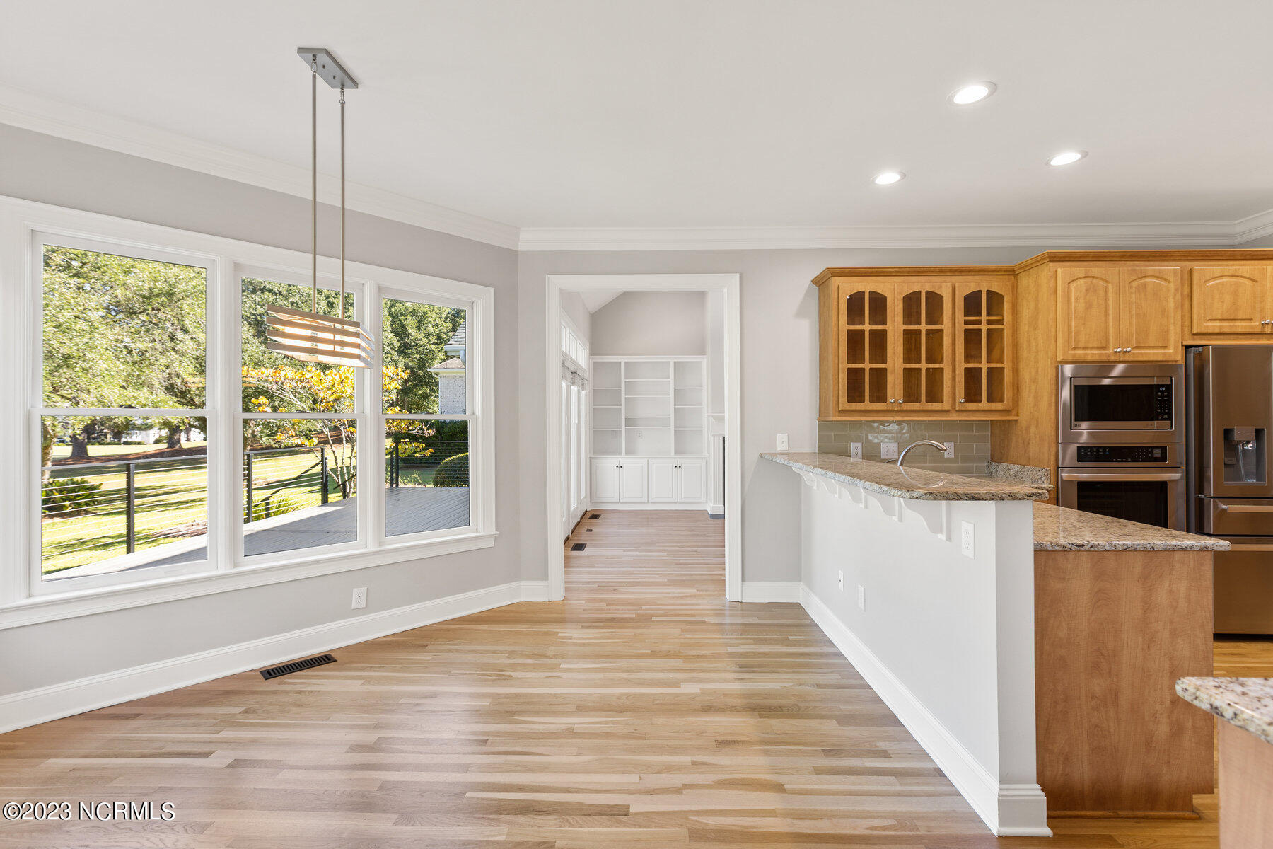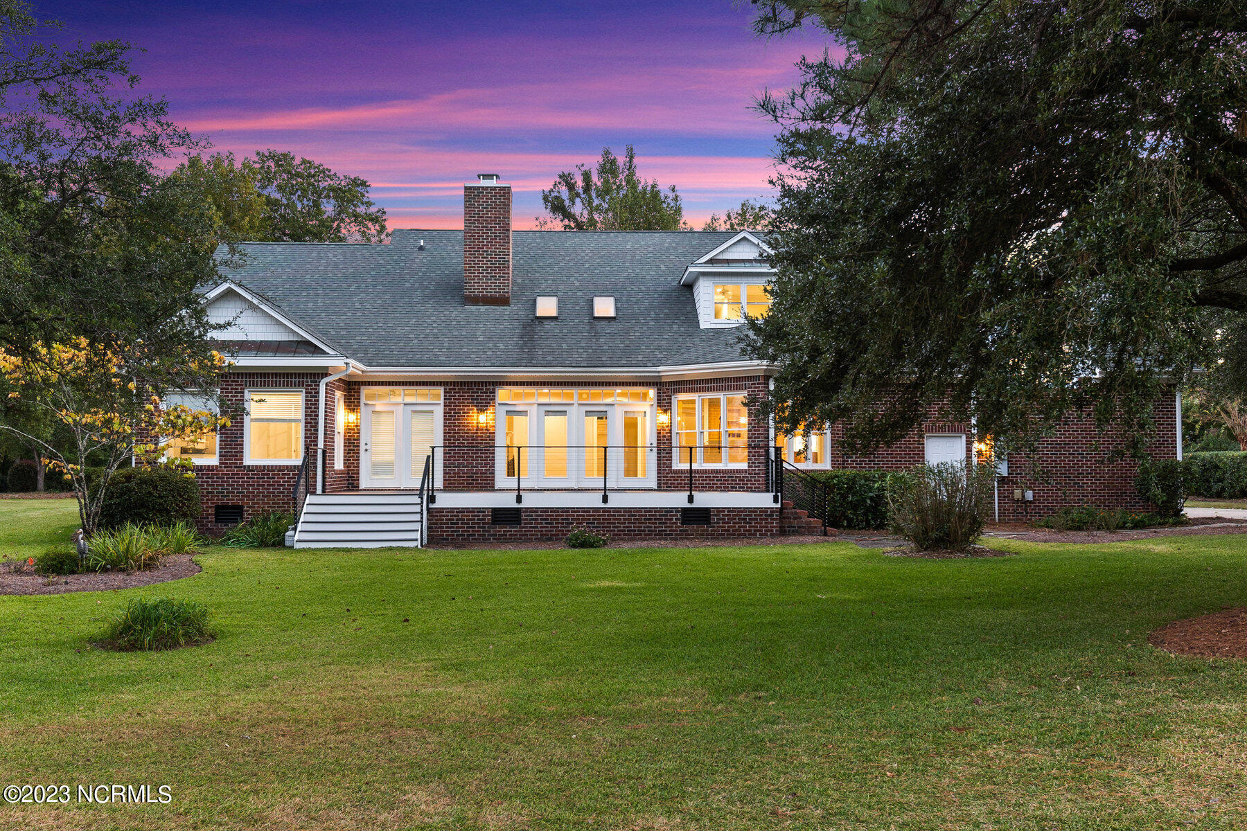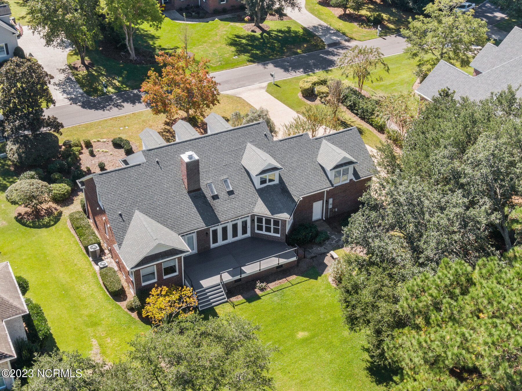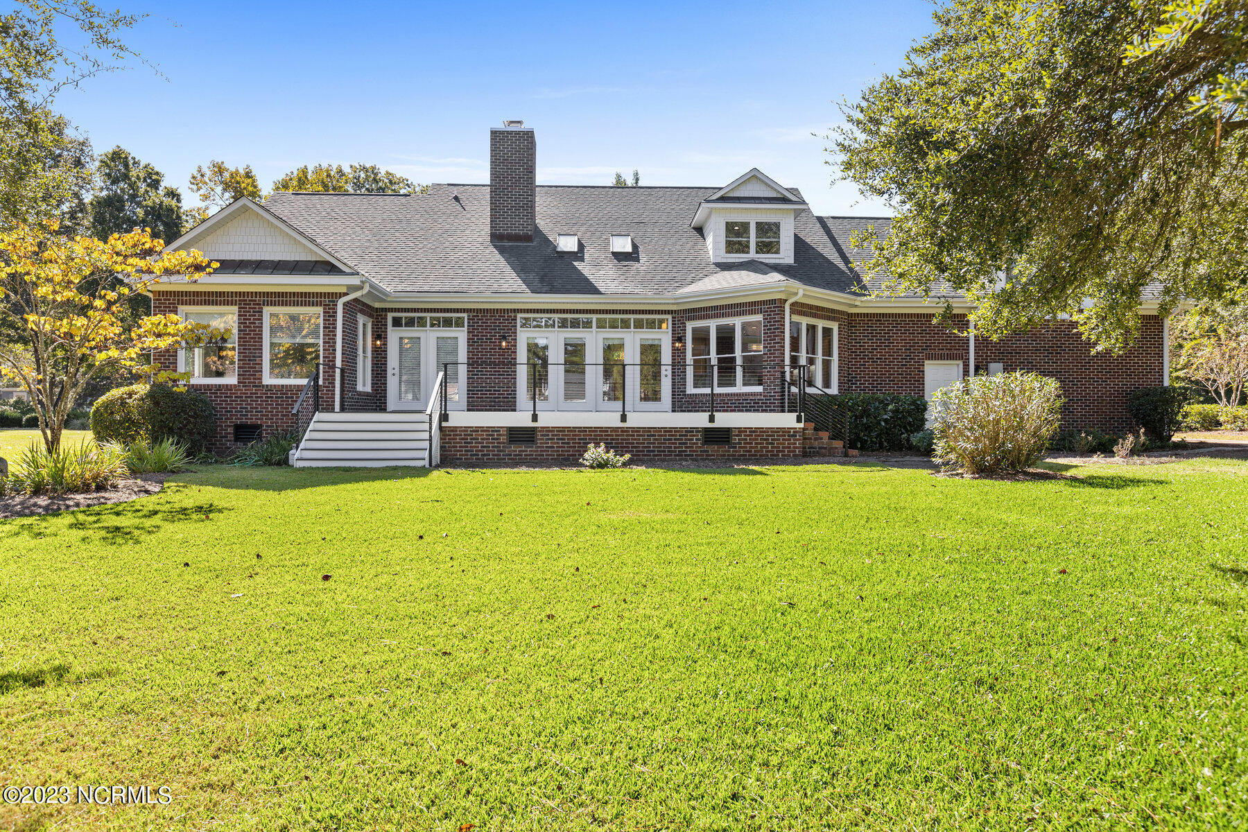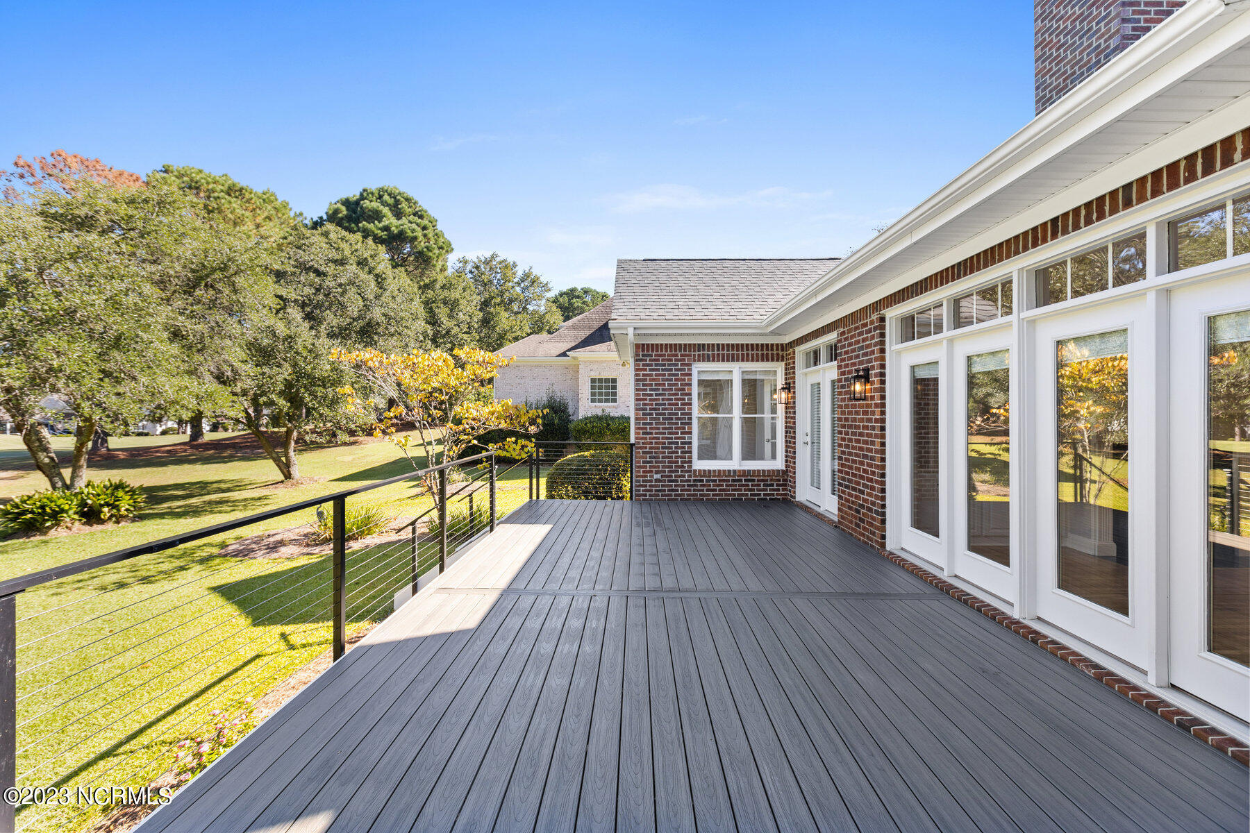 Explore the timeless charm of 125 Hallbrook Farms Circle--a delightful 4-bedroom, 4-bath brick Cape Cod residence nestled on a quiet street, offering captivating golf views of the 5th fairway. This elegant home seamlessly combines classic sophistication with modern convenience. As you step inside you'll discover a meticulously designed interior featuring spacious rooms and top-of-the-line finishes. The elegant moldings and beautiful Oak flooring flow into a sunlit two-story great room with skylights and a cozy gas logs fireplace. The kitchen is complete with custom cabinetry, granite countertops, and quality stainless appliances, and flows into a sunny breakfast room that's ideal for get-togethers. The luxurious master suite offers a spa-like bath, while an en suite office provides an inviting space to work or relax. The private bonus room with a separate staircase is the perfect getaway for a man cave, playroom, or office. The second level is complete with two beds and two full baths. Enjoy leisurely evenings on the sprawling front porch or take in the golf views on the back deck. Recent updates include a new roof, HVAC, water heater, fresh paint, new carpet, new deck, and railing. The appeal of this gated community is that residents have access to the boat ramp and picnic area on the Intracoastal Waterway. Membership to the top-rated Porters Neck Country Club is available and amenities include golf, tennis, fitness, dining, pool, and pickleball. Experience the perfect blend of classic beauty and modern comfort at 125 Hallbrook Farms, your private paradise on the greens.