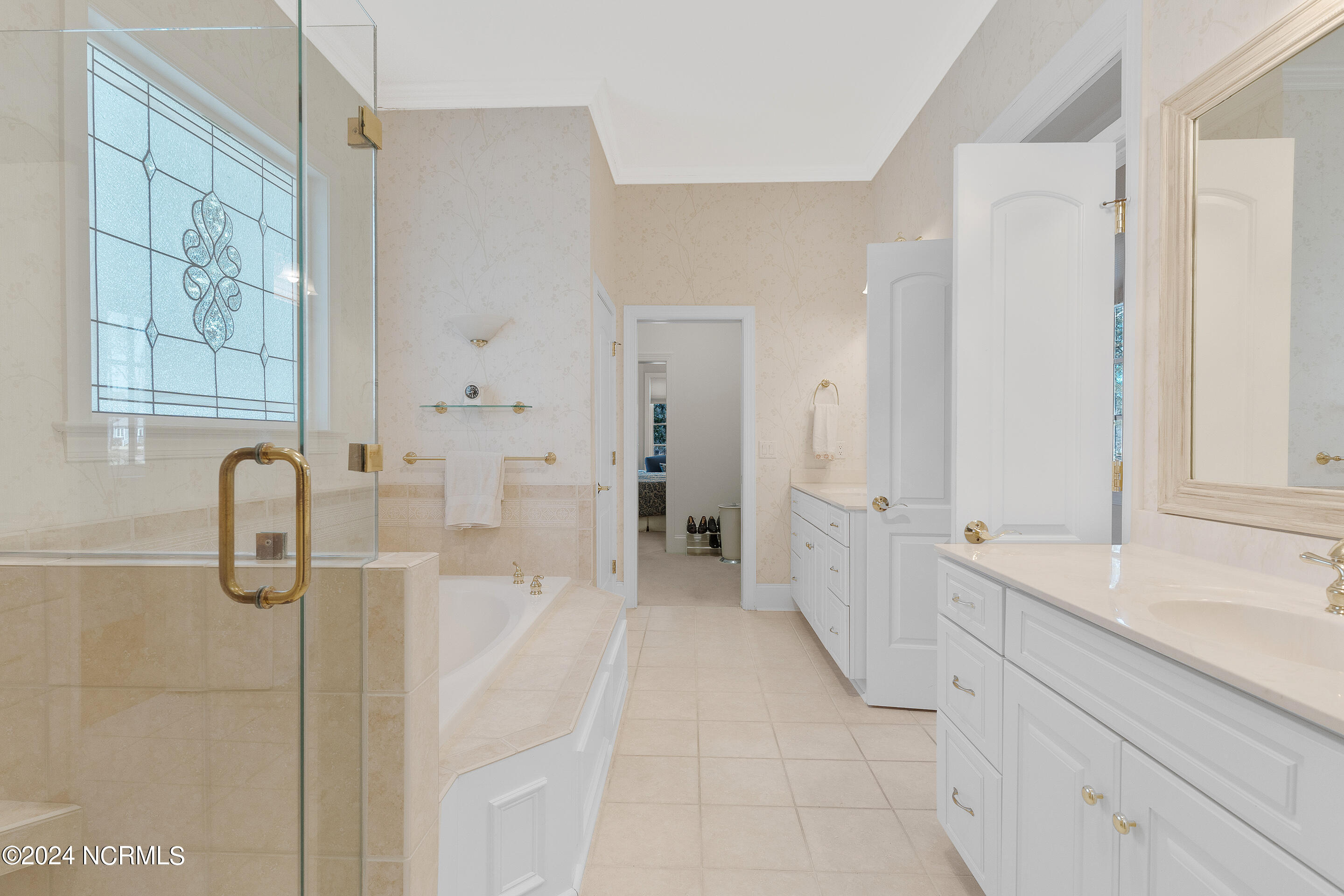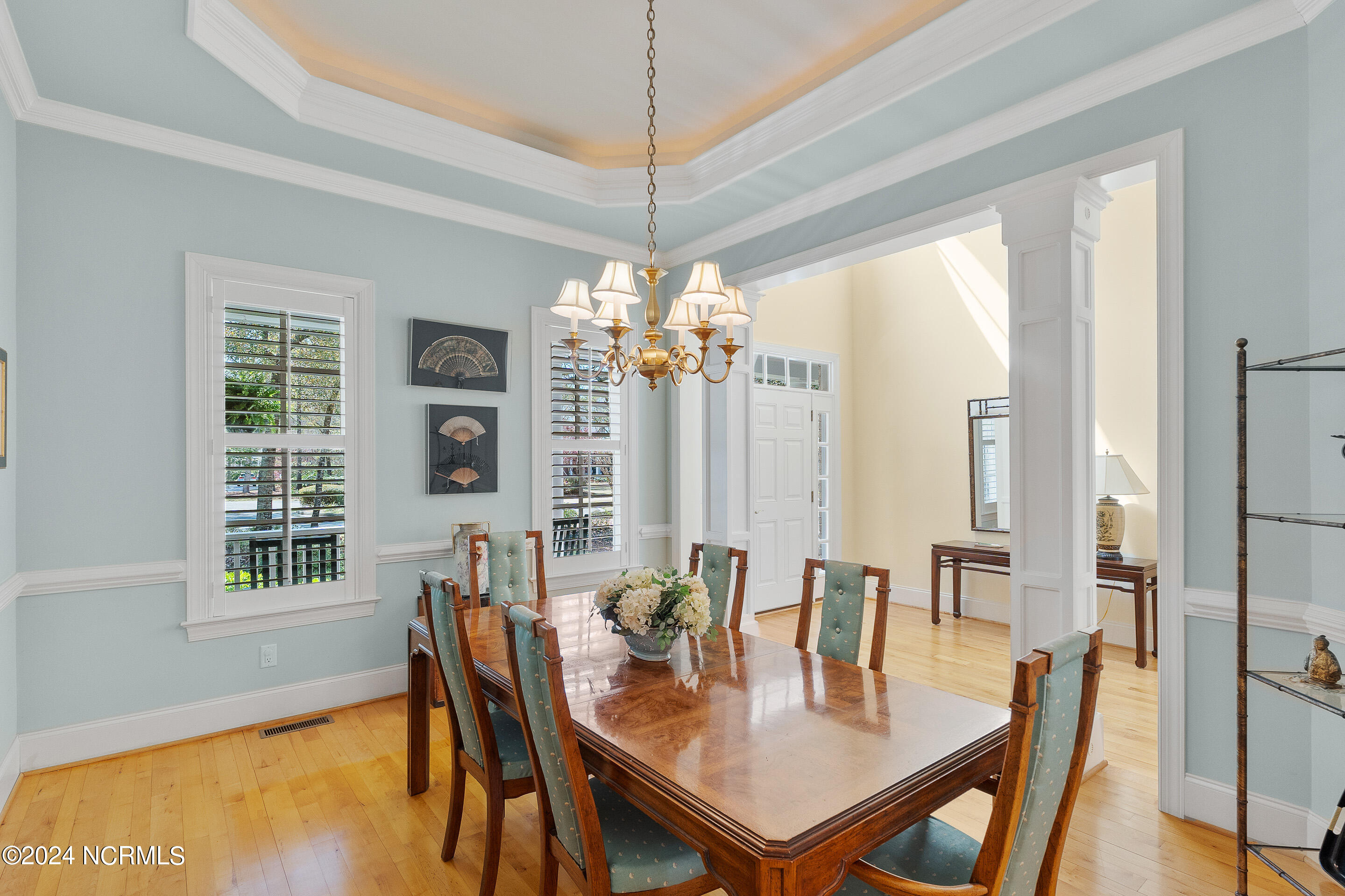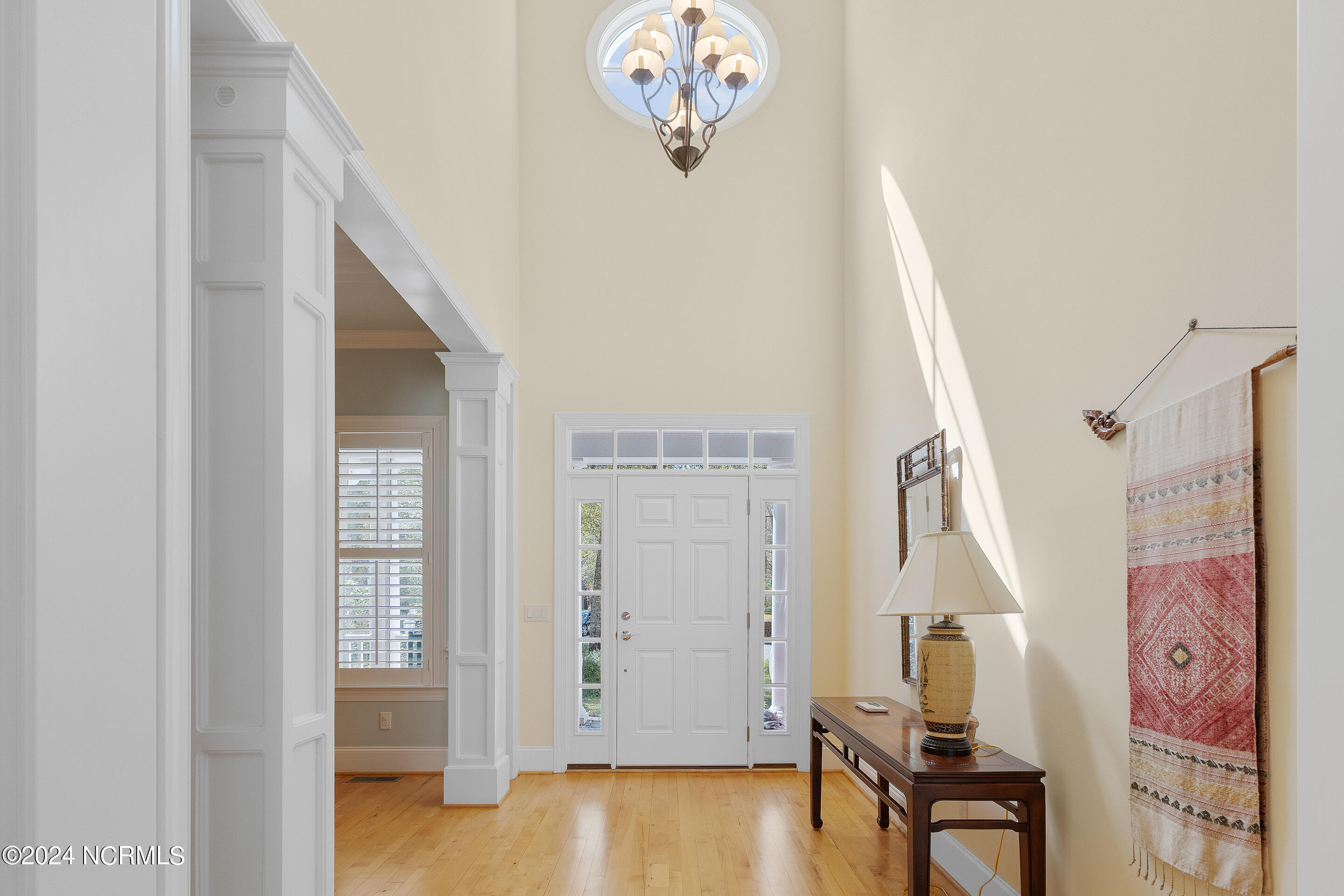 Step into luxury living at its finest with this custom brick home nestled along the second hole of the prestigious Tom Fazio-designed golf course in Porters Neck Plantation. Every corner of this elegant residence exudes sophistication, from the intricate crown molding to the gleaming hardwood floors and custom cabinetry. Entertain in style in the expansive family room--adorned with a cozy fireplace framed by built-in bookshelves--seamlessly flowing onto the back deck and screened porch that offer breathtaking views of the manicured golf course greens. The main level presents an elegant first-floor master suite, complemented by two additional bedrooms, each with their own baths. The formal dining room is perfect for hosting intimate gatherings. Upstairs, discover another bedroom, a full bath, an oversized bonus room, a climate-controlled storage room, and two walk-in attics, providing ample space for all your lifestyle needs. Home is equipped with whole house generator, industrial dehumidifier in walk in crawlspace and 175 ft shared well for irrigation. Residents of Porters Neck have access to the Intracoastal Waterway, complete with a day dock, boat ramp, and picnic area, ensuring endless opportunities for waterfront enjoyment. Don't miss the chance to make this dream home yours and experience the epitome of luxury living coupled with unparalleled golf course views. Schedule your showing today and embrace the exclusive lifestyle awaiting you.