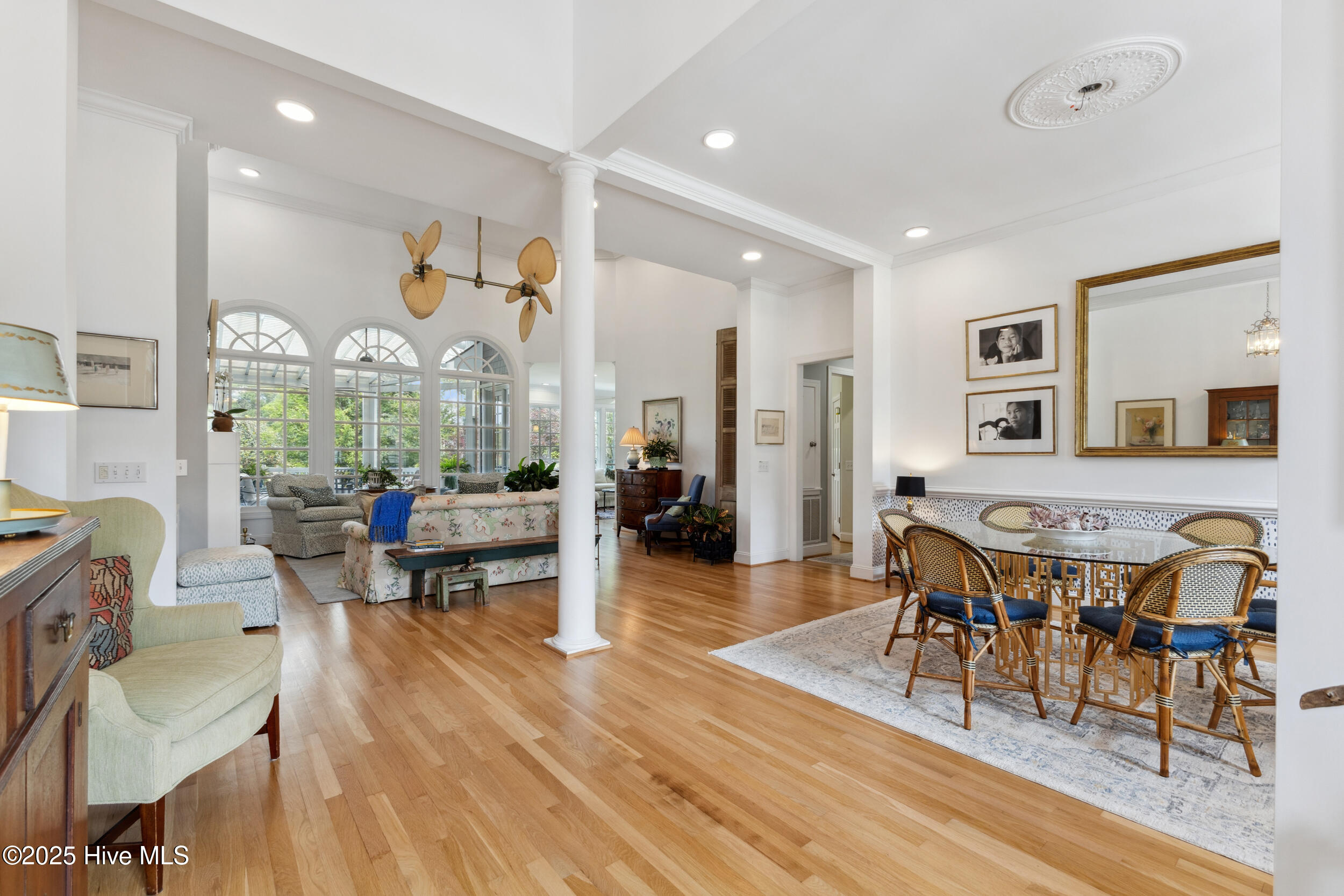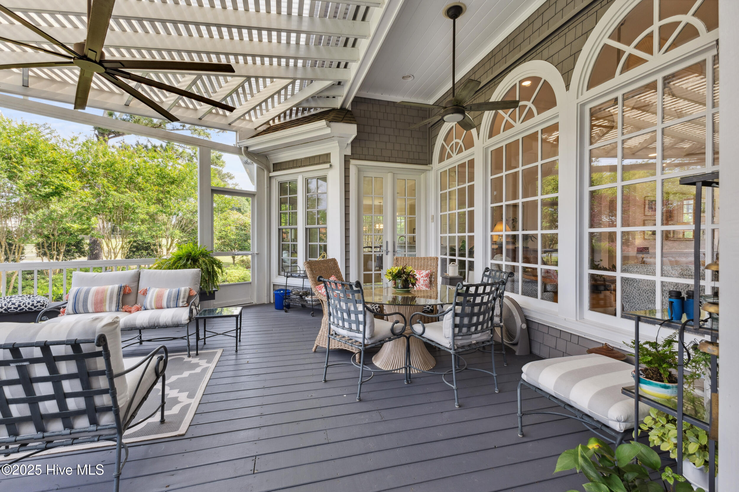 Welcome to 8300 Fazio Drive--a completely renovated custom home perfectly positioned on the 17th green of the Fazio course in the highly desirable, gated community of Porters Neck Plantation. This 4-bedroom, 3.5-bath residence offers a flexible layout designed for modern living, with a spacious primary suite and two guest bedrooms on the main floor, and a fourth bedroom, full bath, and large bonus room upstairs--ideal for a home office, gym, or media space. Thoughtfully updated from top to bottom, this home features a brand-new chef's kitchen, beautifully redesigned bathrooms, and gleaming hardwood floors throughout the main level. Oversized new Anderson windows and soaring 10-14 ft ceilings fill the open-concept layout with natural light and showcase sweeping views of the golf course and private, wooded backyard. The kitchen opens seamlessly to a sunny breakfast area and sitting room, while a stunning oversized screened porch by Porch Solutions provides ample space for dining, relaxing, and enjoying the outdoors in comfort. Additional highlights include over 1,000 sq ft of terraced decking, a welcoming covered front porch, ample attic storage, and a whole-home Generac generator for peace of mind. Located in one of Wilmington's premier golf course communities with water access and first-class amenities, this home offers luxury, privacy, and a lifestyle you'll love.