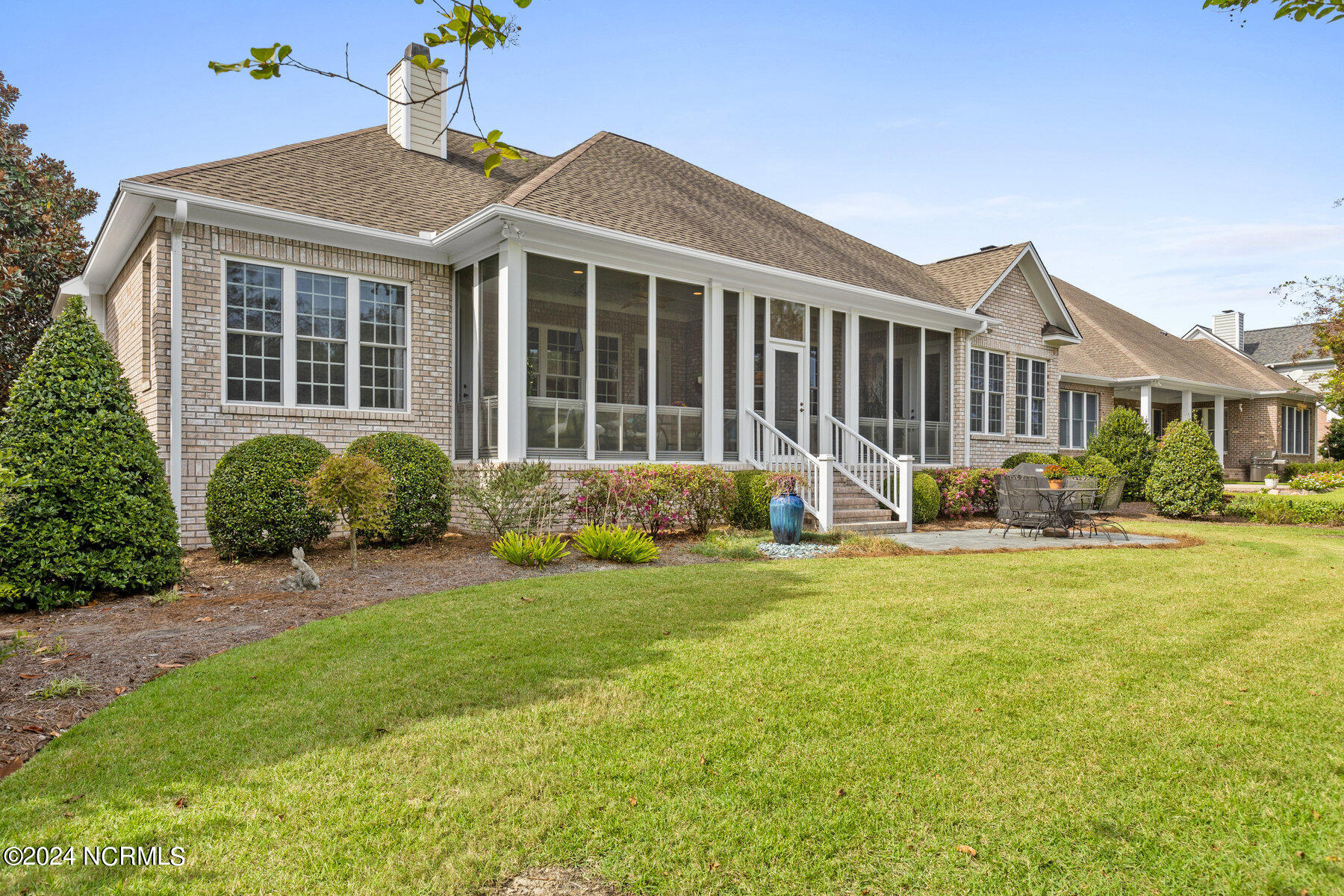 Nestled in the prestigious, gated community of Porters Neck Plantation, this all-brick 3-bedroom, 3.5-bath home offers a perfect blend of luxury and functionality. Primarily designed for one-level living, it features an open floor plan, a bright and airy sunroom with stunning views of the 15th green, and a gourmet kitchen equipped with top-of-the-line appliances. The home's master suite boasts sweeping golf course views, two closets, a soaking tub, and a walk-in shower. Completing the first level is a second bedroom with its own full bath, a powder room, and a dedicated office with serene views--ideal for remote work or quiet study. A private upstairs suite, accessible from the garage, offers a comfortable retreat for guests or family members seeking extra privacy. Additional highlights include a termite bond, a whole-house generator, and a dehumidifier in the crawlspace for added peace of mind and protection. Meticulously maintained by the original owner, the home is rich in high-end finishes and thoughtful upgrades throughout. Residents enjoy the tranquility of this golf course property along with access to the community boat ramp on the Intracoastal Waterway. Optional memberships to the highly rated country club are also available. This is a rare opportunity to enjoy serene living in one of the area's most sought-after communities