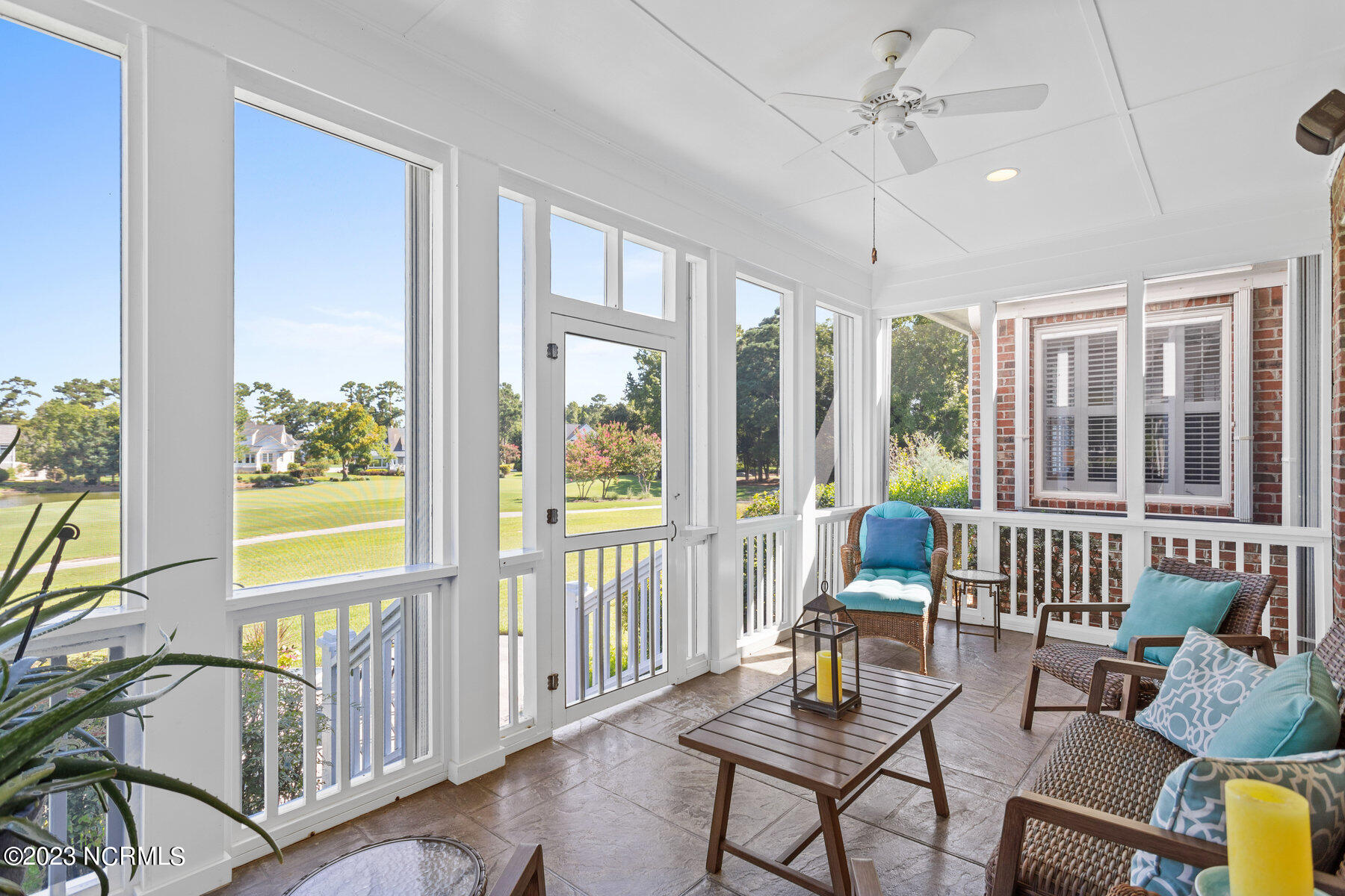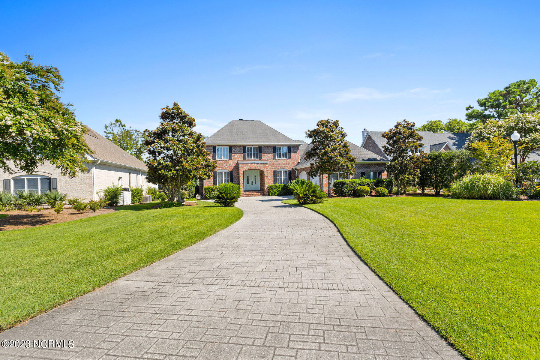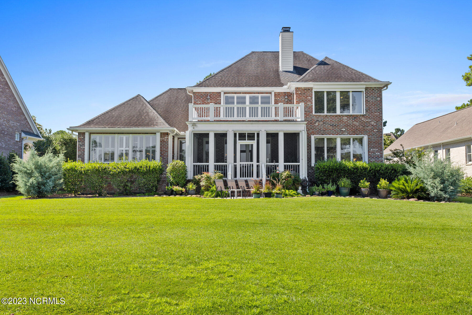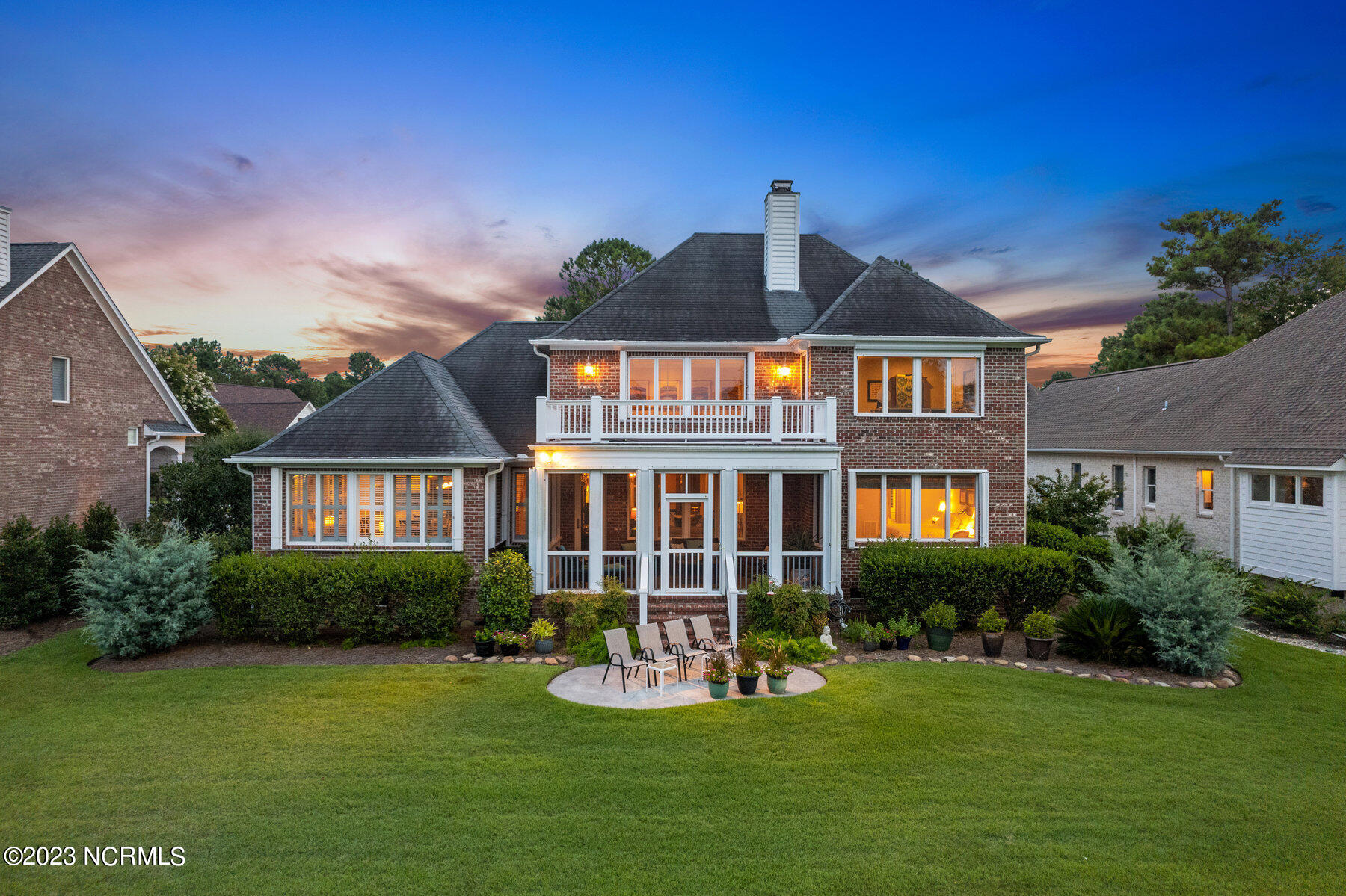 Welcome home to 8940 Woodcreek Circle--a charming four-bedroom, three-and-a-half-bath brick home overlooking the 14th green of Porters Neck Country Club with stunning views of Lake Nona. Upon entering the double doors your eyes will be drawn to the expansive water and golf views as you settle into the two-story living room complete with built-ins around the fireplace. Moving around the corner leads you to a butler's pantry and then into the gourmet chef's kitchen complete with top-of-the-line appliances including the centerpiece Wolf 6-burner gas range, double ovens with convection, Sub-Zero refrigerator and Miele dishwasher anchored by an oversized island with granite tops. The kitchen and additional sitting area both have spectacular golf course views. Step out onto your private screened porch to unwind after a long day and enjoy the sunset. The first-level master suite is complete with a walk-in closet, walk-in shower, and jetted tub. Finishing off the first level is a formal dining room, powder room, and expansive laundry room. Upstairs boasts three bedrooms and two bathrooms and a large walk-in attic space for easy storage. The fourth bedroom with en suite bath also has a private balcony with arguably the best vantage point for water views.