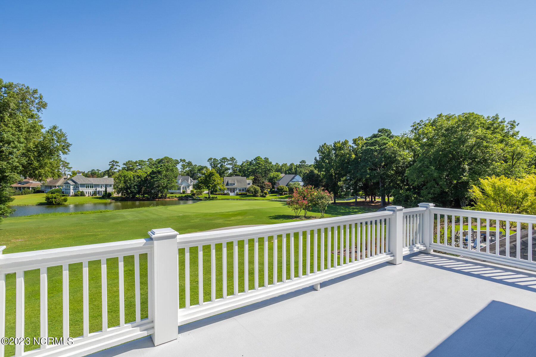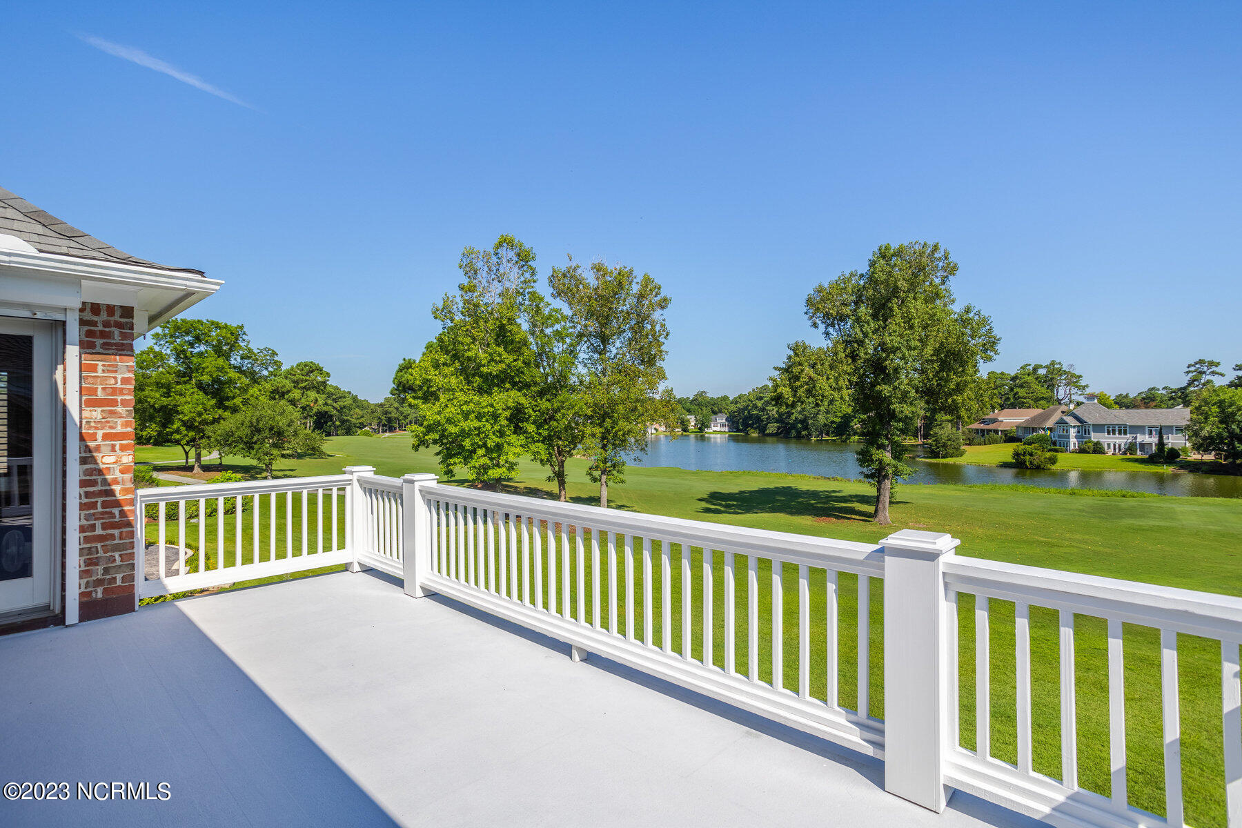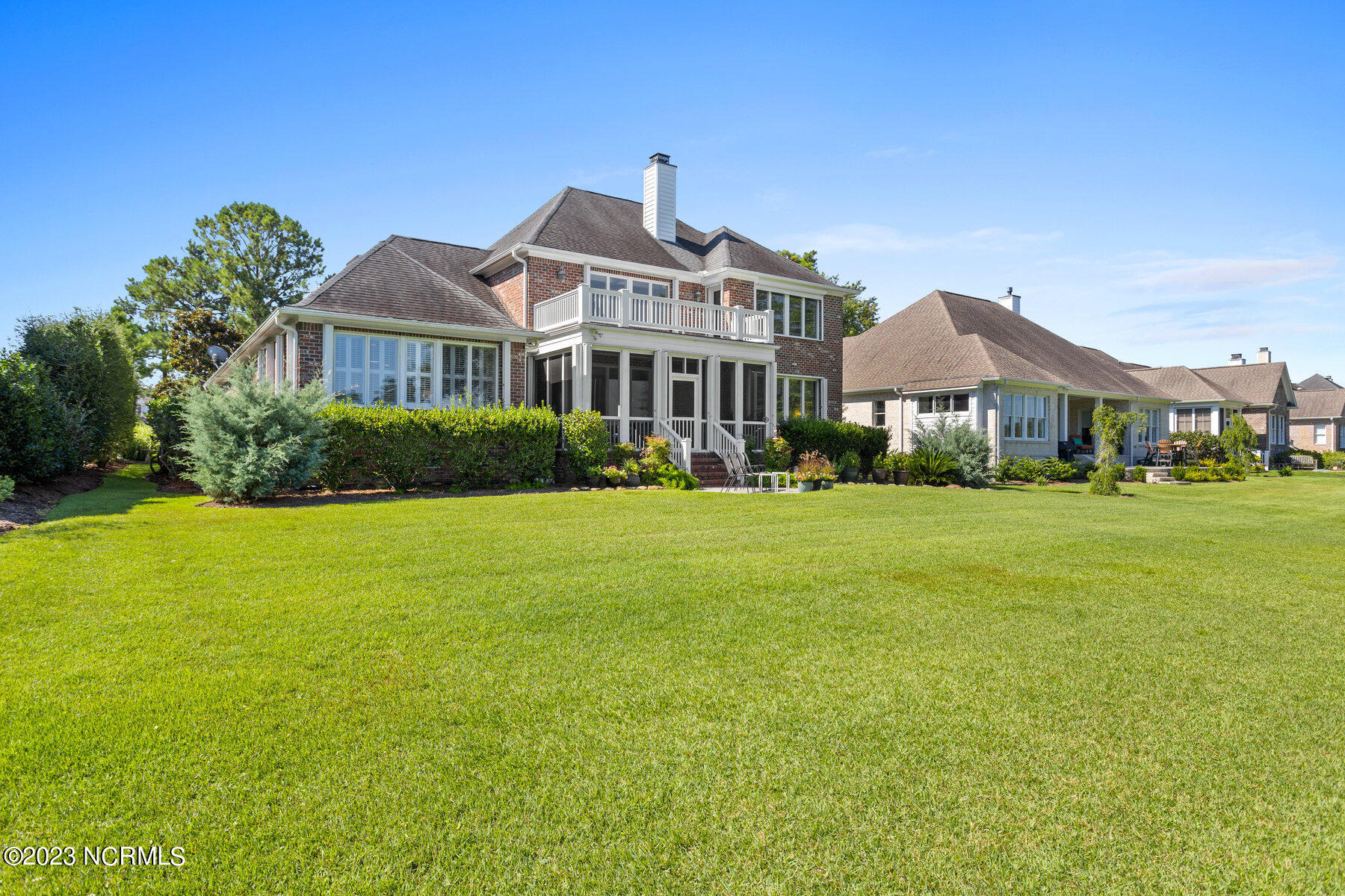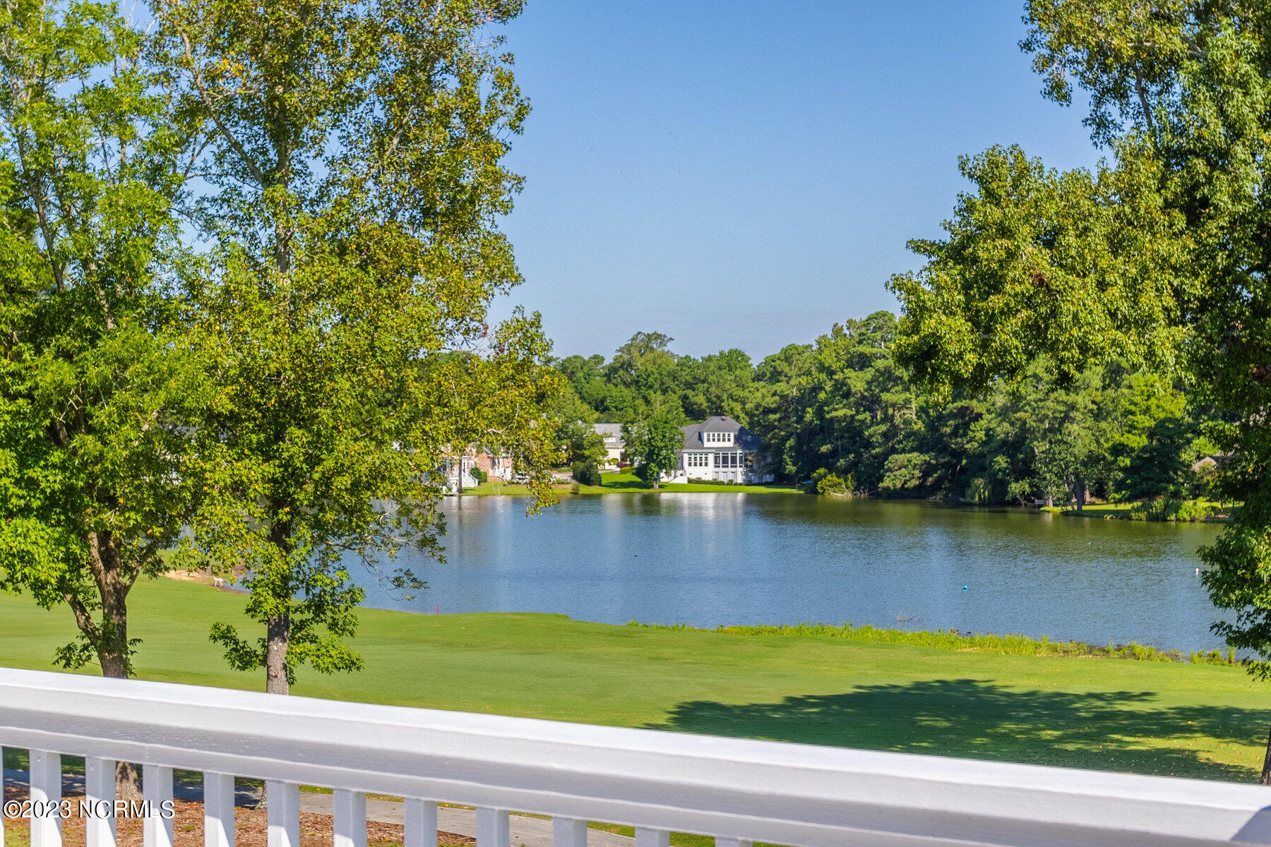 Welcome home to 8940 Woodcreek Circle--a charming four-bedroom, three-and-a-half-bath brick home overlooking the 14th green of Porters Neck Country Club with stunning views of Lake Nona. Upon entering the double doors your eyes will be drawn to the expansive water and golf views as you settle into the two-story living room complete with built-ins around the fireplace. Moving around the corner leads you to a butler's pantry and then into the gourmet chef's kitchen complete with top-of-the-line appliances including the centerpiece Wolf 6-burner gas range, double ovens with convection, Sub-Zero refrigerator and Miele dishwasher anchored by an oversized island with granite tops. The kitchen and additional sitting area both have spectacular golf course views. Step out onto your private screened porch to unwind after a long day and enjoy the sunset. The first-level master suite is complete with a walk-in closet, walk-in shower, and jetted tub. Finishing off the first level is a formal dining room, powder room, and expansive laundry room. Upstairs boasts three bedrooms and two bathrooms and a large walk-in attic space for easy storage. The fourth bedroom with en suite bath also has a private balcony with arguably the best vantage point for water views.
