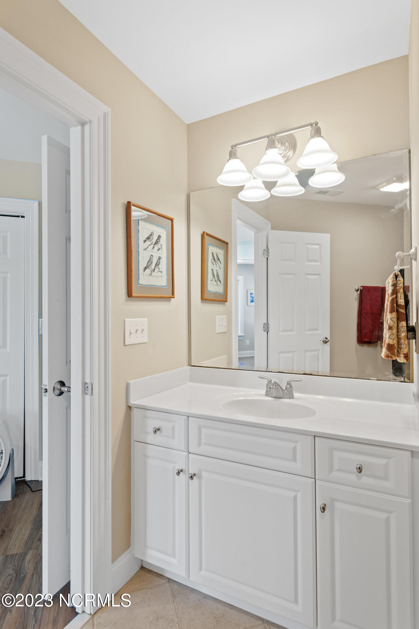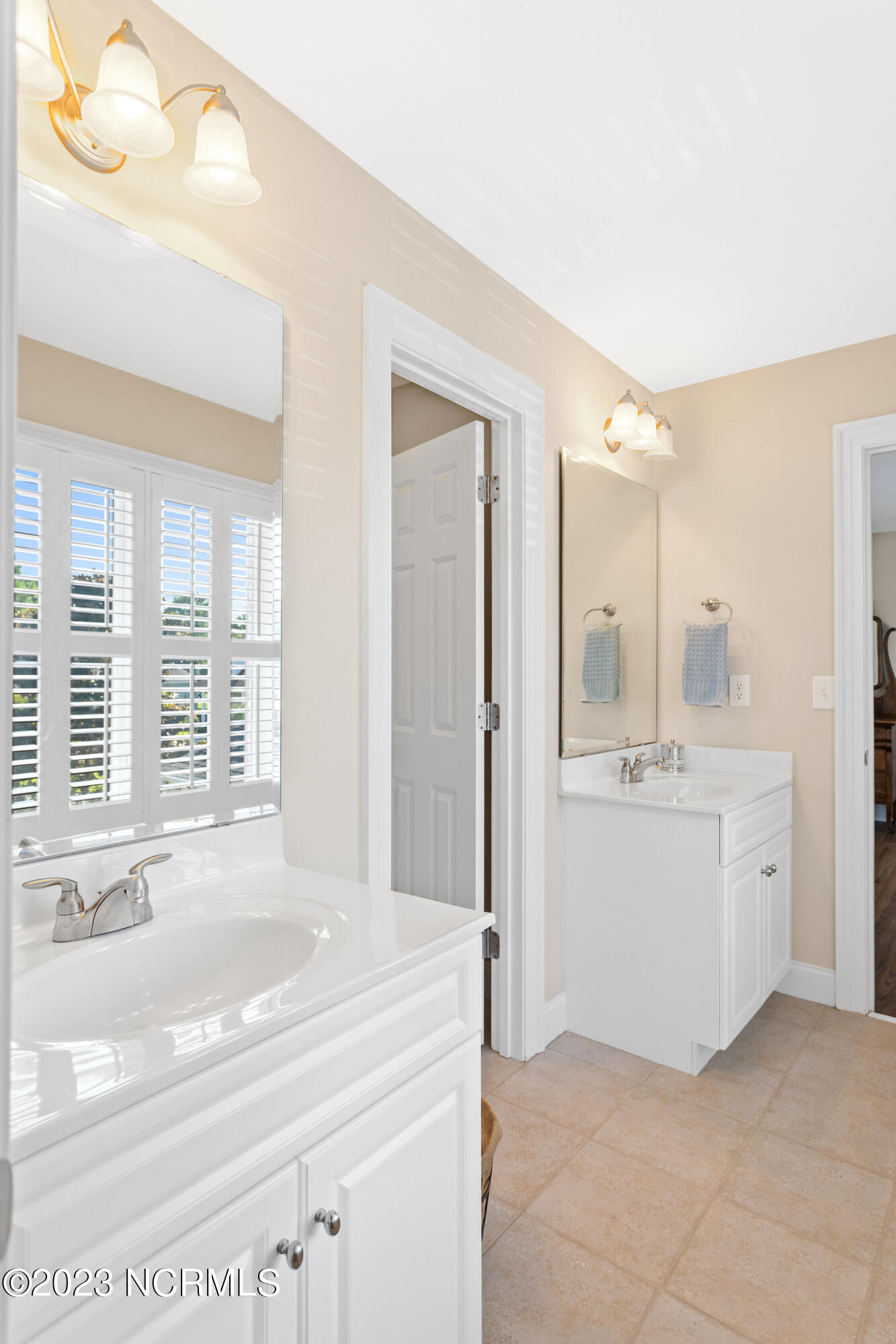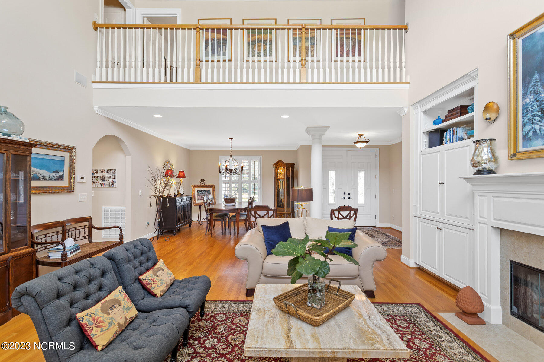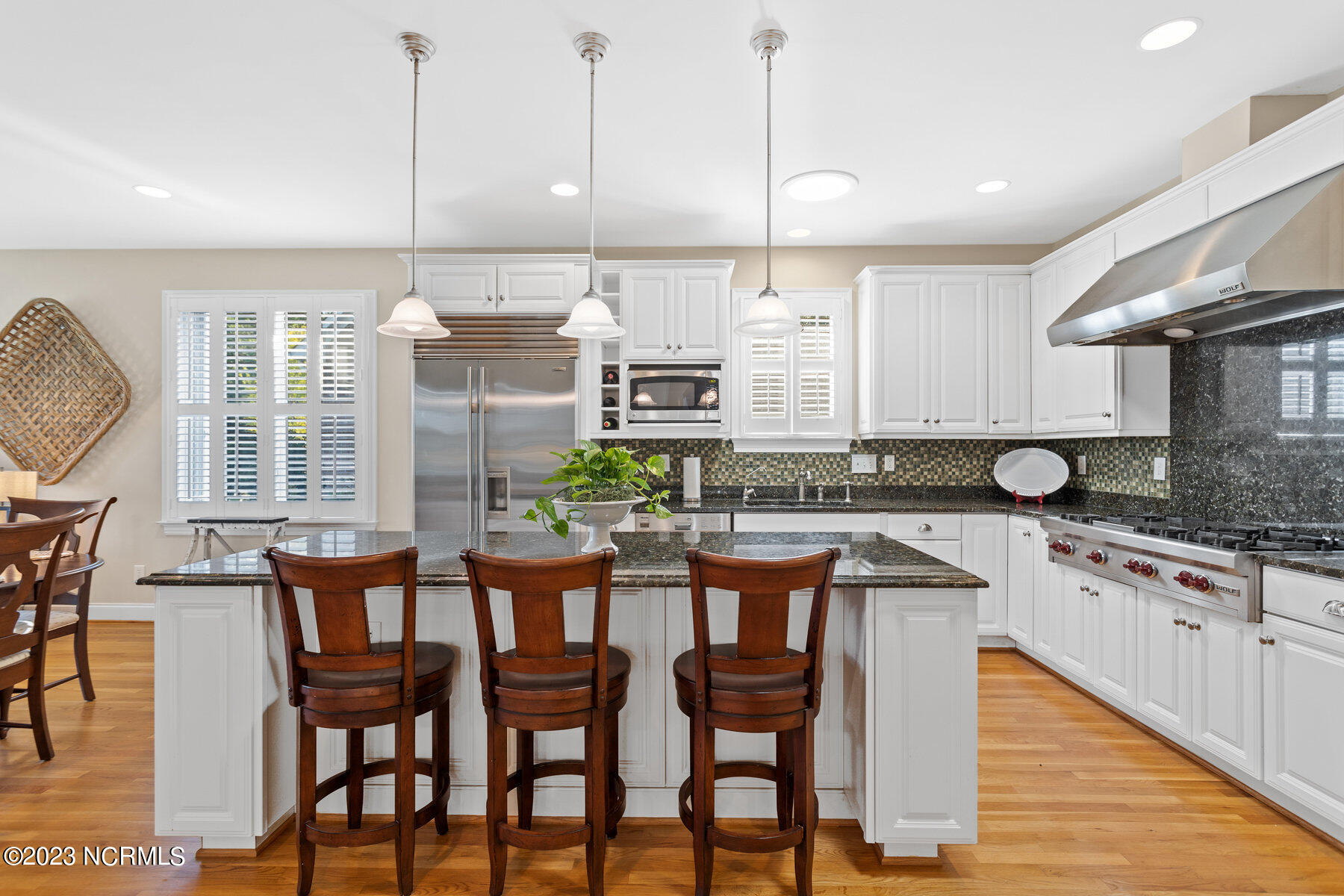 Welcome home to 8940 Woodcreek Circle--a charming four-bedroom, three-and-a-half-bath brick home overlooking the 14th green of Porters Neck Country Club with stunning views of Lake Nona. Upon entering the double doors your eyes will be drawn to the expansive water and golf views as you settle into the two-story living room complete with built-ins around the fireplace. Moving around the corner leads you to a butler's pantry and then into the gourmet chef's kitchen complete with top-of-the-line appliances including the centerpiece Wolf 6-burner gas range, double ovens with convection, Sub-Zero refrigerator and Miele dishwasher anchored by an oversized island with granite tops. The kitchen and additional sitting area both have spectacular golf course views. Step out onto your private screened porch to unwind after a long day and enjoy the sunset. The first-level master suite is complete with a walk-in closet, walk-in shower, and jetted tub. Finishing off the first level is a formal dining room, powder room, and expansive laundry room. Upstairs boasts three bedrooms and two bathrooms and a large walk-in attic space for easy storage. The fourth bedroom with en suite bath also has a private balcony with arguably the best vantage point for water views.